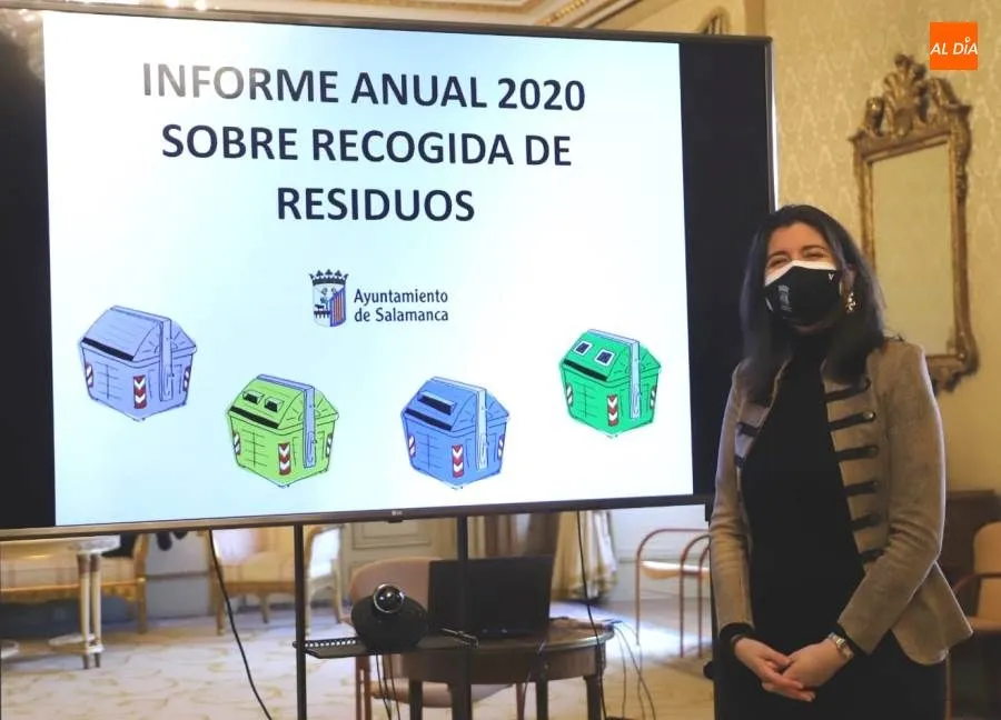 La concejala de Medio Ambiente del Ayuntamiento de Salamanca, Miryam Rodríguez, ha presentado hoy el informe sobre recogida de residuos correspondiente al año 2020. Ejercicio en el que, pese a las restricciones derivadas de la pandemia de Covid-19, algunos servicios municipales volvieron a batir un nuevo récord histórico.