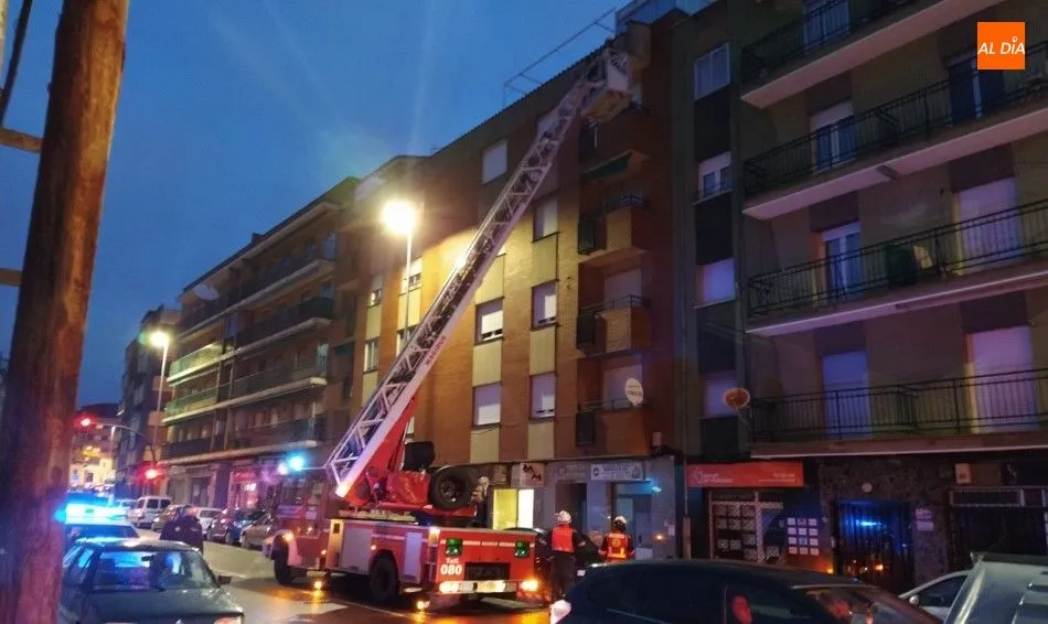 Una dotación de Bomberos tenía que intervenir para revisar la cubierta del edificio, en la carretera de Ledesma 96, del que retiró varias tejas sueltas