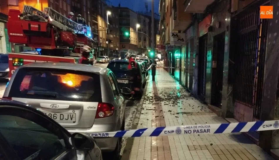 Unos minutos antes de las 8.00 horas, un camión del Servicio de Extinción de Incendios del Ayuntamiento de Salamanca acudía al número 96 de la carretera de Ledesma, debido al aviso por un desprendimiento de una cornisa del tejado, que había provocado la caída de cascotes en la acera, por la que habitualmente pasan numerosos viandantes.