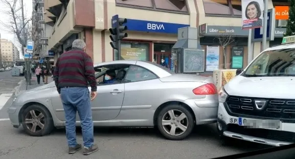 Un accidente de tráfico en la glorieta de la Puerta Zamora se ha saldado sin heridos, pero con daños materiales, tras la colisión de un taxi que salía de la parada ubicada en ese lugar y de un turismo que estaba girando hacia el paseo de Torres Villarroel.
