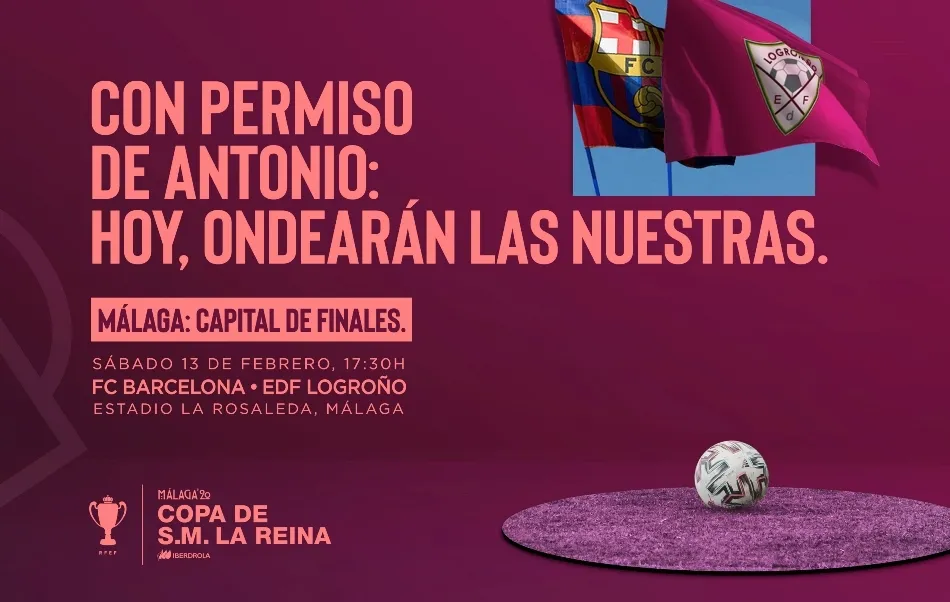 Este sábado, en la gran final, el EDF Logroño tiene como rival al FC Barcelona, que marcha como líder de la Primera Iberdrola sin haber cedido ni un solo punto en 16 partidos. De este modo, el club blaugrana es súperfavorito para la final, pero el club riojano promete salir a competir ?y por qué no, dar la campanada?, además de disfrutar lo máximo posible. La final de este sábado en el Estadio de La Rosaleda de Málaga (que tiene una original cartelería con Antonio Banderas, Picasso o Chiquito de la Calzada como protagonistas) se podrá ver en directo en Teledeporte a partir de las 17.30 horas (habrá un pequeño previo desde las 17.20 horas).