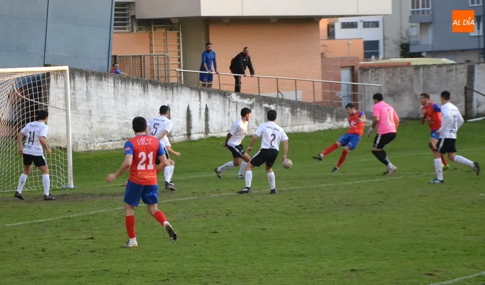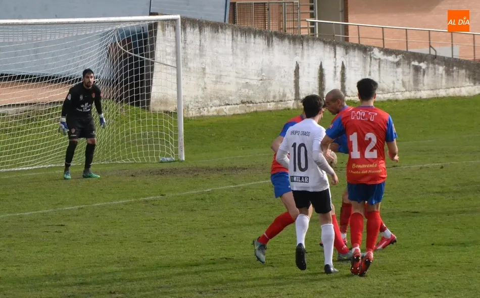 La siguiente oportunidad, que fue doble, llegó en el 22?: Adrián Gallego envió el balón en largo a Alberto García, saliendo el portero del Benavente a intentar taparlo, pero el jugador mirobrigense se lo llevó (quedando el portero tendido en el suelo) casi por línea de fondo, realizando un tiro con poco ángulo que impactó contra un defensa que estaba en la línea de gol. El balón quedó suelto, enganchándolo Alberto Martín para hacer otro tiro que le dio a otro defensa también en la línea de gol.