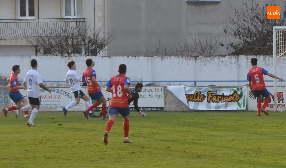 De este modo, el Ciudad Rodrigo estuvo inédito arriba en el segundo tiempo (el Benavente sí armó en el tramo inicial 3 jugadas, solventando dos de ellas la defensa y la otra el línea al levantar el banderín señalando fuera de juego) hasta que llegó el que a la postre sería único gol del partido. Fue en el 63?, en una acción en la cual Alberto García abrió desde el centro el balón a la izquierda para Maza, quién desde el lateral izquierdo del área sacó un pase de la muerte que mandó al fondo de la red cayéndose Alberto Martín.