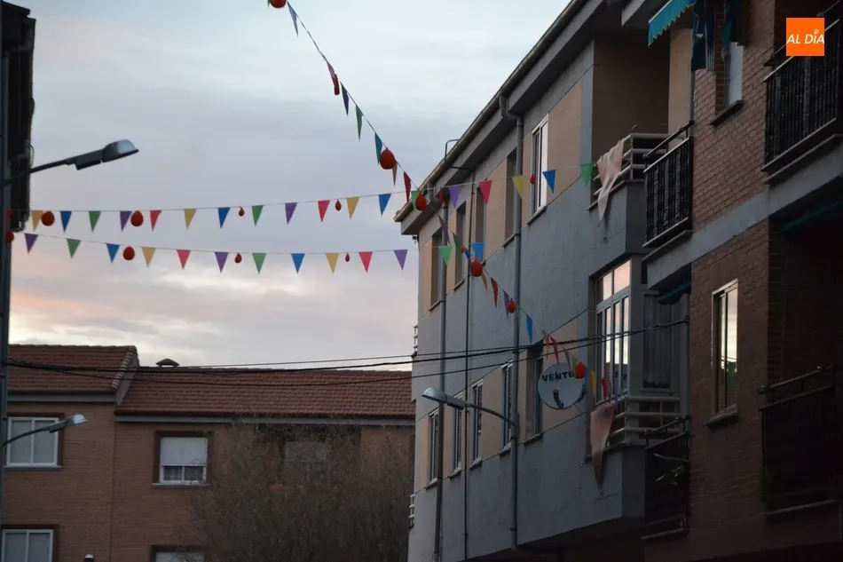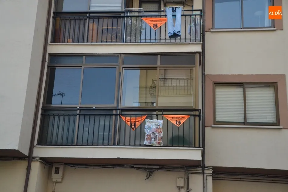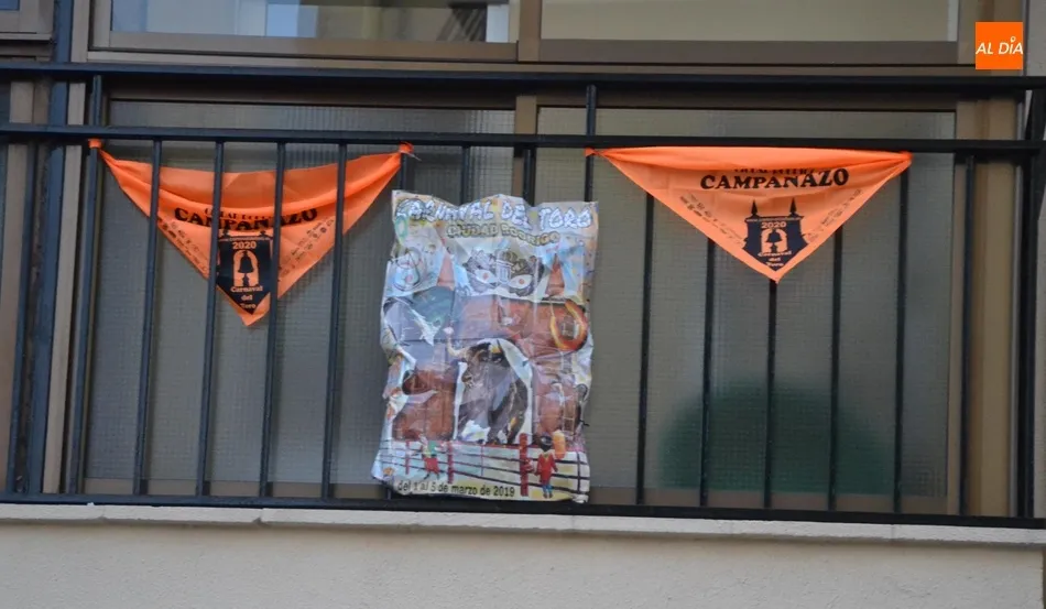 Junto a esos pañuelos, en algún que otro punto de Ciudad Rodrigo se puede ver expuesto durante estos días algún elemento carnavalero adicional. Por ejemplo, en un balcón de la calle Santa Clara luce junto a un par de pañuelos un cartel oficial del Carnaval del Toro 2019, mientras que en una vía bastante cercana, la calle Benito Sánchez, se pueden observar banderines festivos colgados de un lado a otro de la calle enlazando balcones que también cuentan con los mencionados pañuelos farinatos. De este modo, pese a no poderse celebrar el Carnaval, su espíritu está muy presente en las calles durante todos estos días.