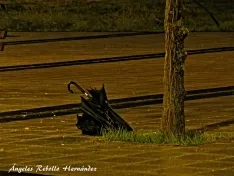 ?Mirad ahí el paraguas, que tanto nos protegió de las lluvias y hostigos, ya con sus alas rotas, varado ya en la tierra. Fue materia con alma...? (José Luis Puerto) / Foto de Ángeles Rebollo