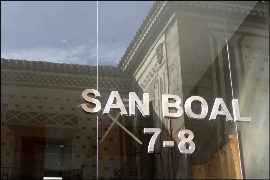 Porque el Cinema Salamanca, inaugurado en 1945, se construyó sobre un juego de pelota abierto en 1937 para solaz de los habitantes de una ciudad en guerra que se quedaban sin pelotaris porque les llamaban a filas, hasta tal punto que tuvieron que organizar un espectáculo de mujeres ?raquetistas? que despertaban no poco interés entre el público. La actividad del Frontón El Tormes, construido en el solar liberado de viejas casitas que comprara Elipio Sánchez Marcos, cesó en 1943 con gran alivio de la iglesia franquista, erigiéndose en su lugar el Cinema Salamanca que luego sería reconvertido en multicines hasta su última exhibición en junio del 2006. El tiempo que pasa y que pesa se llevó por delante el edificio curvo sin ventanas, cuyo recuerdo fotografía Amador en la placa casi modernista que homenajea su existencia, así como el nombre de Elipio Sánchez Marcos y el de sus hijos, amantes del cine, ese cine que se resiste a abandonar el esquinazo que se adentra en la Plaza de San Boal, rincón recoleto en el que la modernidad, metal y cristal, deja para Amador reflejos de esgrafiado renacentista. Porque en el edificio de líneas como rayos de luz, la madera recrea, de la mano del escultor Andrés Alvárez Ilzarbe, una de las piezas más exquisitas y desconocidas de la obra artística privada, asomada a los ojos del paseante atento que recuerda con nostalgia los tiempos del imponente edificio del Cinema Salamanca.