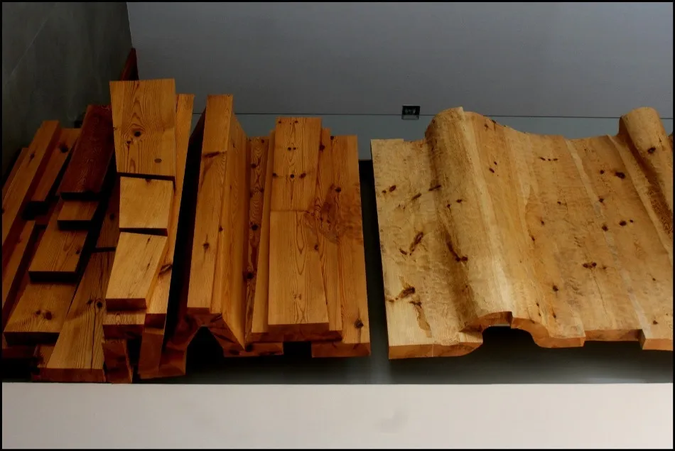 En el edificio de líneas como rayos de luz, la madera recrea, de la mano del escultor Andrés Alvárez Ilzarbe, la nostalgia del imponente edificio