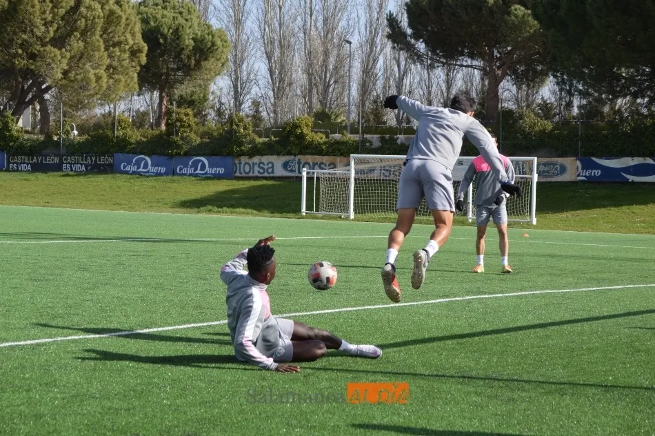 El Salamanca UDS se puso el gol entre ceja y ceja en el entrenamiento de este viernes, que tuvo lugar en el Tori. La plantilla incidió mucho en buscar la portería con ejercicios de centros y remates con la idea de afinar la puntería de cara al encuentro del próximo domingo en Barreiro con el filial del Celta de Vigo.