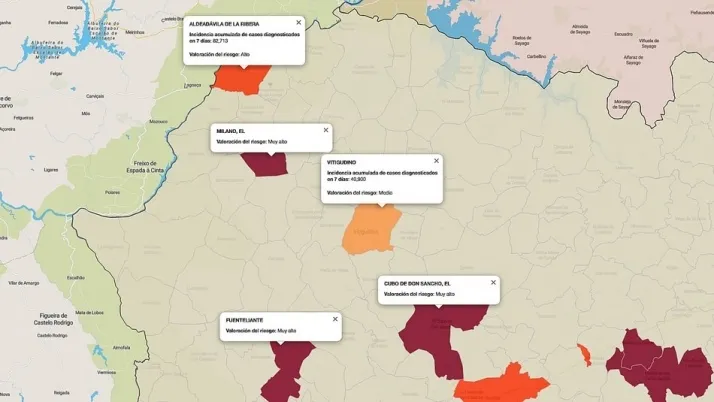 Aunque pertenece al área de salud de La Fuente de San Esteban, cabe señalar la reaparición de al menos un cso positivo en el municipio de El Cubo de Don Sancho.