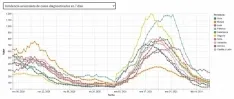 En cuanto a la incidencia acumulada a 14 días, el dato del conjunto de la Comunidad se sitúa en 272 casos por 100.000 habitantes, y todavía alguna provincia, como es el caso de Soria, supera los 500 casos por 100.000, con 559.
