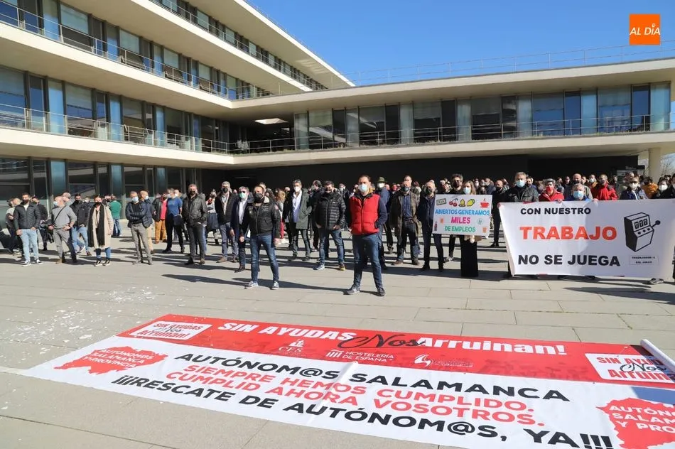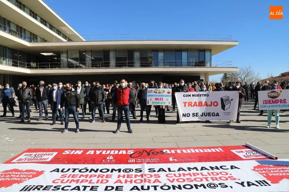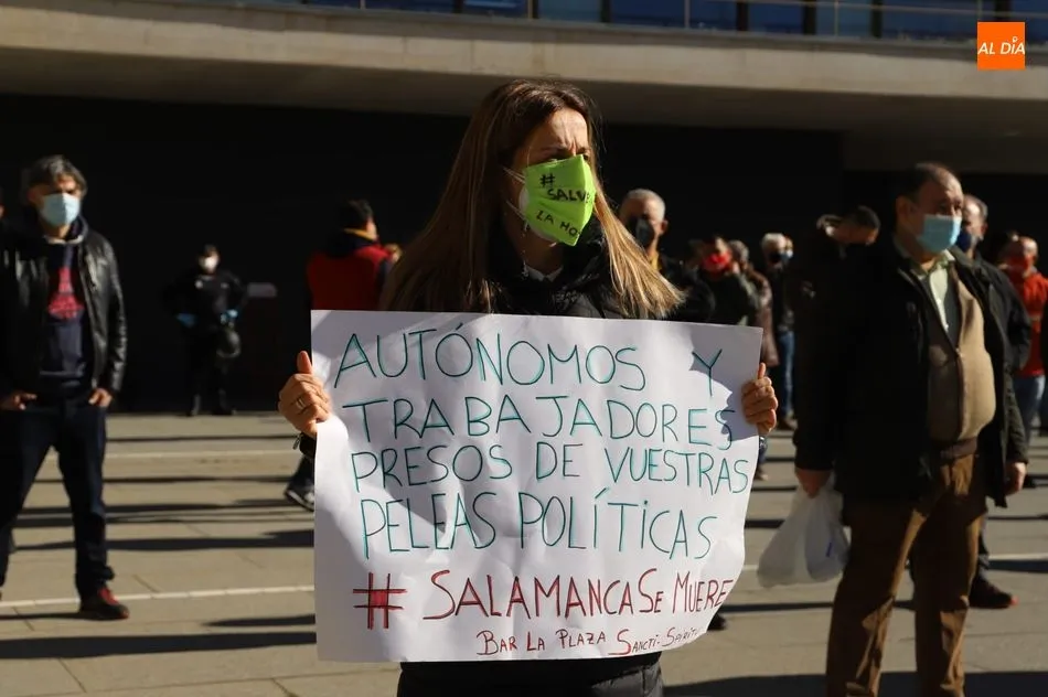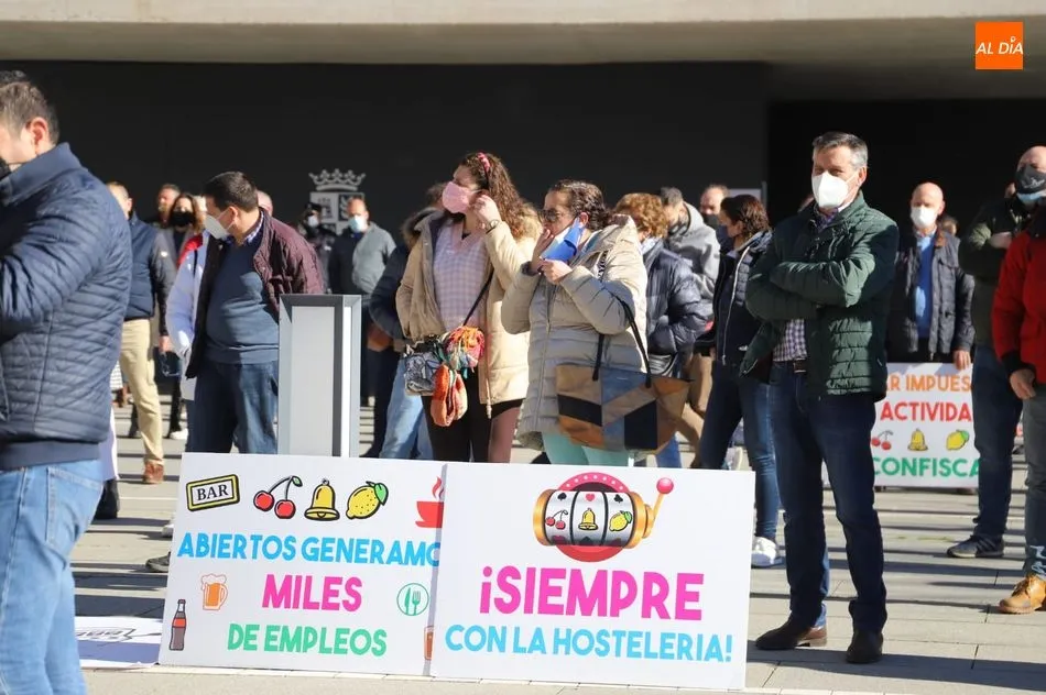 Los manifestantes mostraban su enfado por ? una gestión de la pandemia tan improvisada, incoherente y falta de criterio, que ha llevado a nuestro sector a la ruina y cierres?. En este sentido, argumentan que ?la prueba de la incoherencia la tenemos en las medidas tomadas con el adelanto del toque de queda y la resolución que ha recibido la Junta de Castilla y León del Tribunal Supremo?.