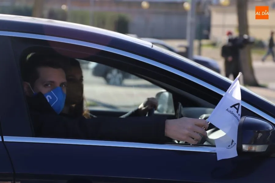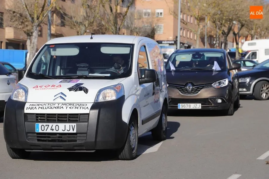 Grupos de autónomos de Salamanca, convocados por AUPA, han protagonizado este miércoles una caravana de vehículos, que partía desde el aparcamiento de las Bernardas, para recorrer la ciudad, con el fin de denunciar la difícil situación de las pymes, causada por los efectos de la crisis de la Covid-19, y reivindicar ayudas par evitar los cierres ?inminentes?.