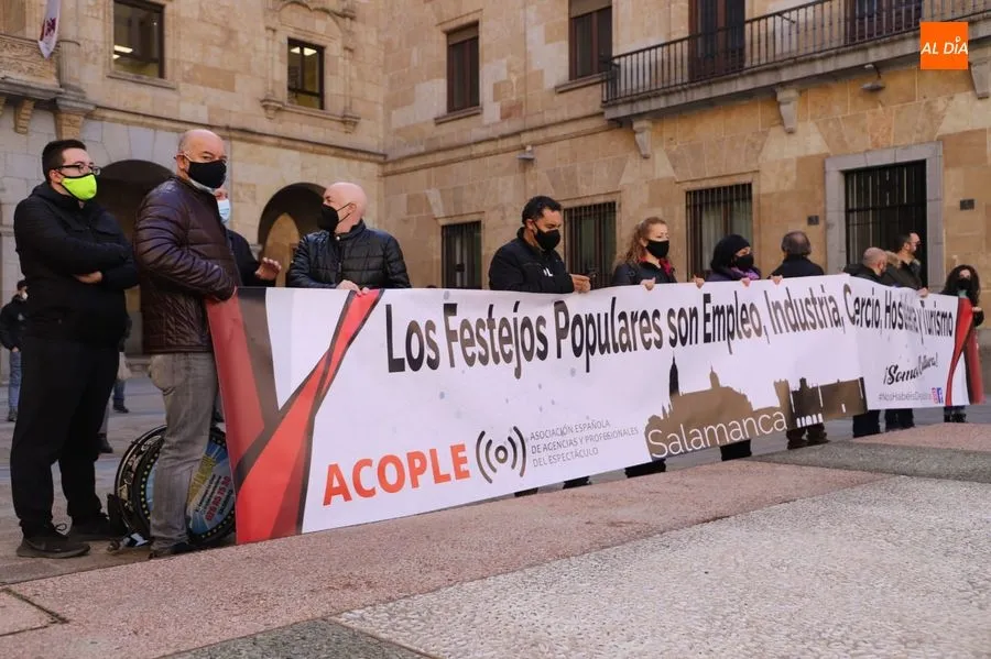 Después, en la plaza de la Constitución, frente a la Subdelegación del Gobierno, se unían a estas protestas otros colectivos como ACOPLE, la Asociación Española de Agencias Profesionales del Espectáculo, comerciantes, profesionales de peluquerías, taxis, agencias de viajes y otros sectores.