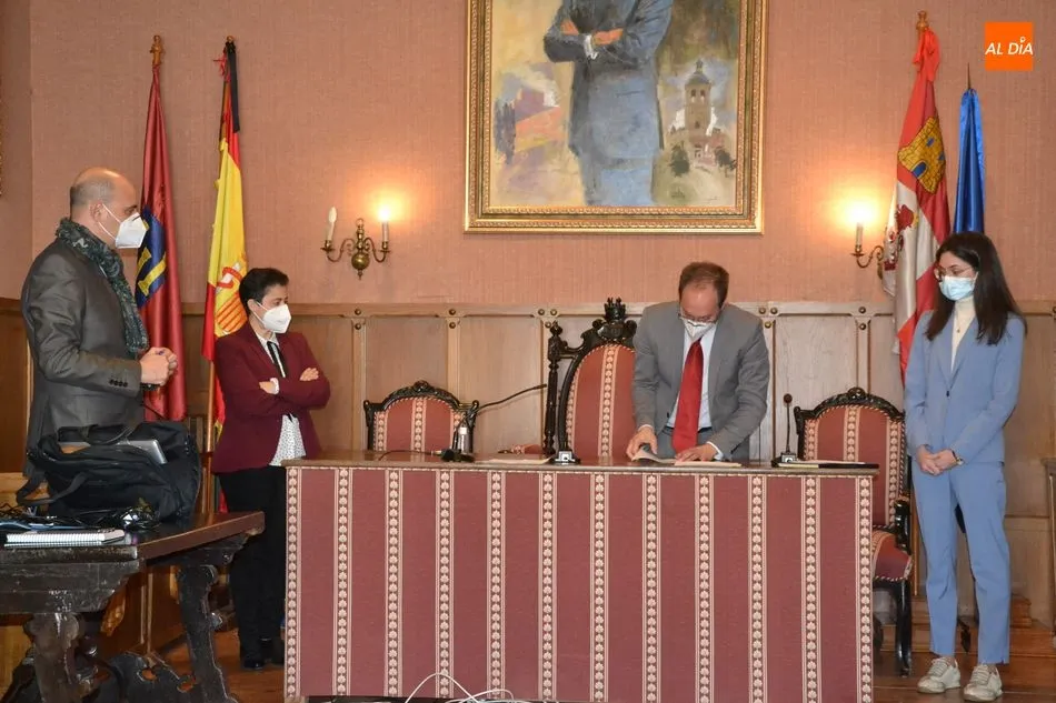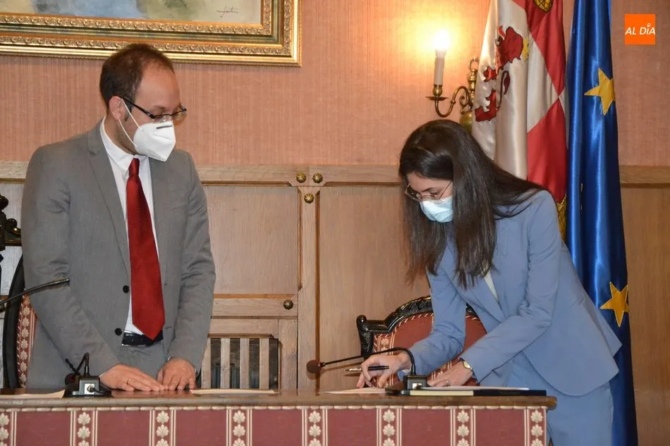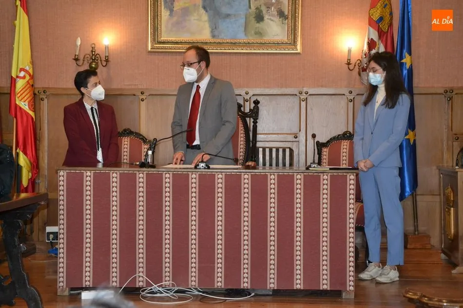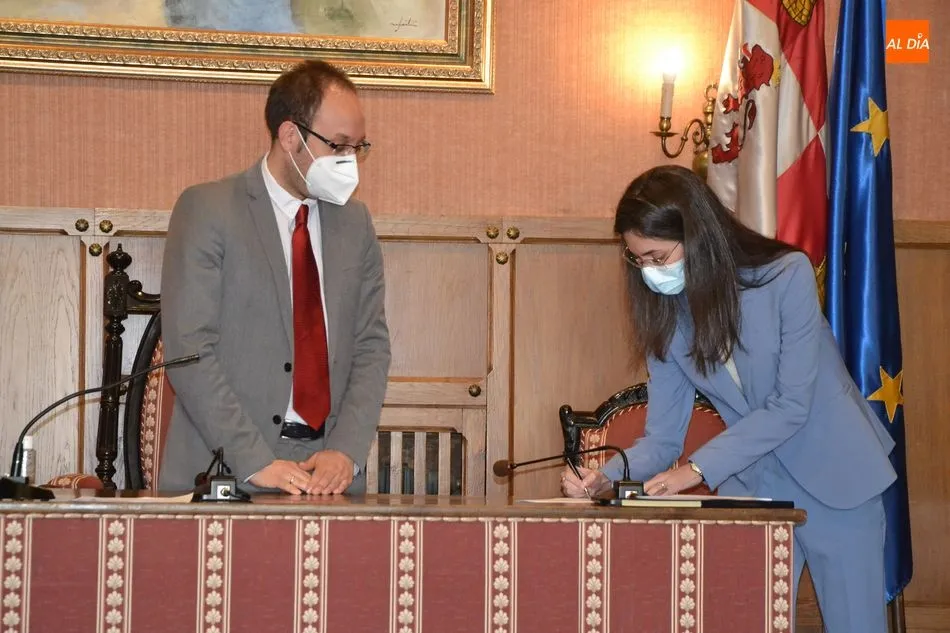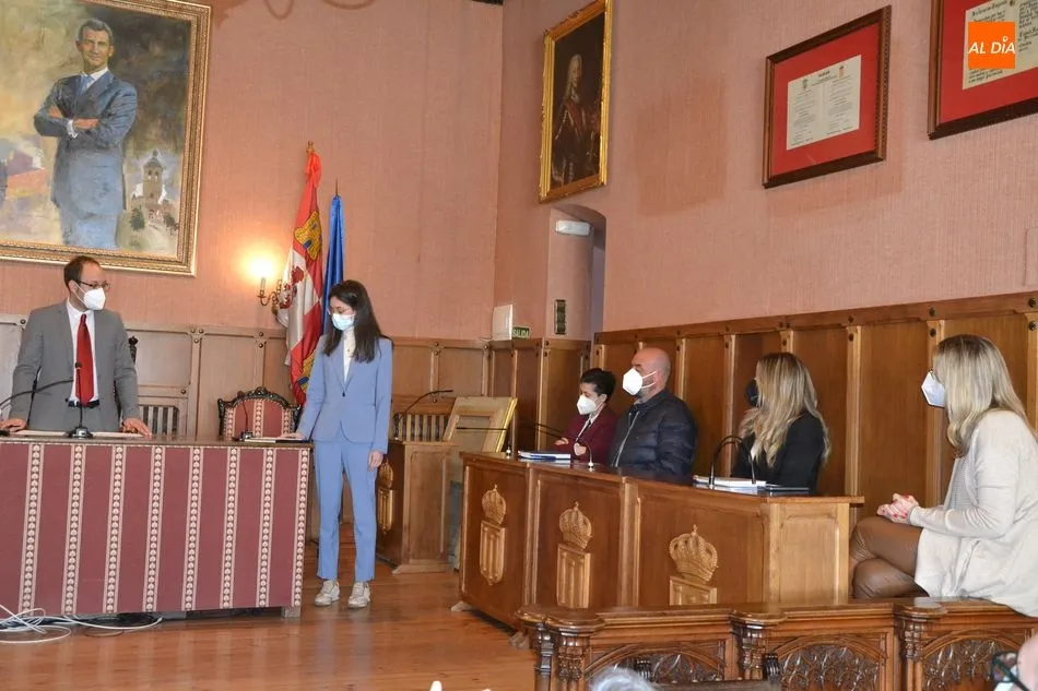 El salón de plenos de la Casa Consistorial acogió en la mañana del miércoles el acto de toma de posesión de la nueva arquitecta del Ayuntamiento de Ciudad Rodrigo, María Mateos Campos, quién se hizo con la plaza en juego en la exigente oposición desarrollada en los meses finales del año 2020. Como publicamos en su momento, esta plaza, de funcionario de carrera del grupo A, está adscrita al Departamento de Urbanismo del Consistorio, ejerciendo funciones de técnico superior.