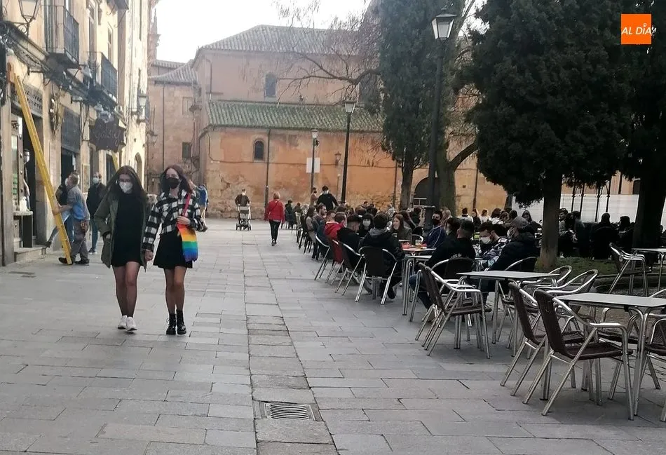 La hostelería salmantina va recuperando la afluencia de los clientes a medida que la incidencia del coronavirus se va reduciendo. Una vez más, las terrazas de la ciudad se llenan de clientes de cara al fin de semana, con la posibilidad de la desescalada a poco má
