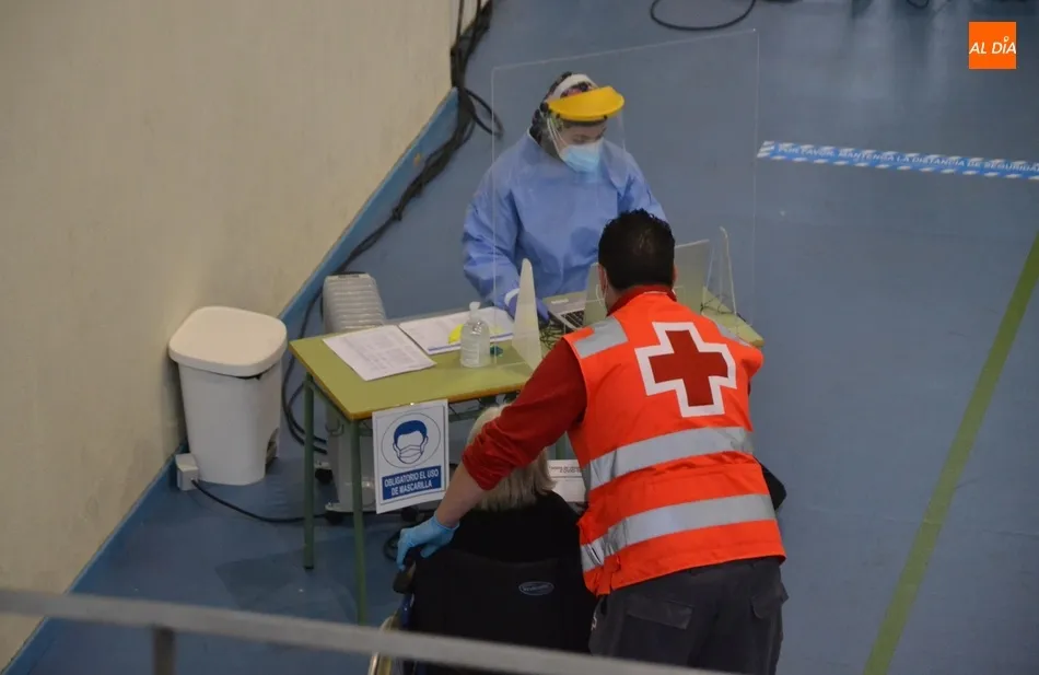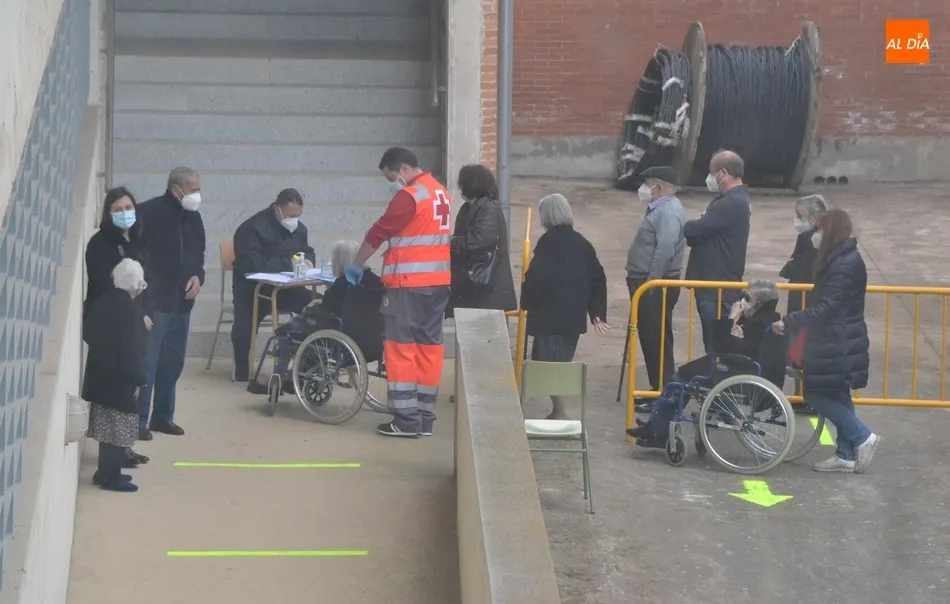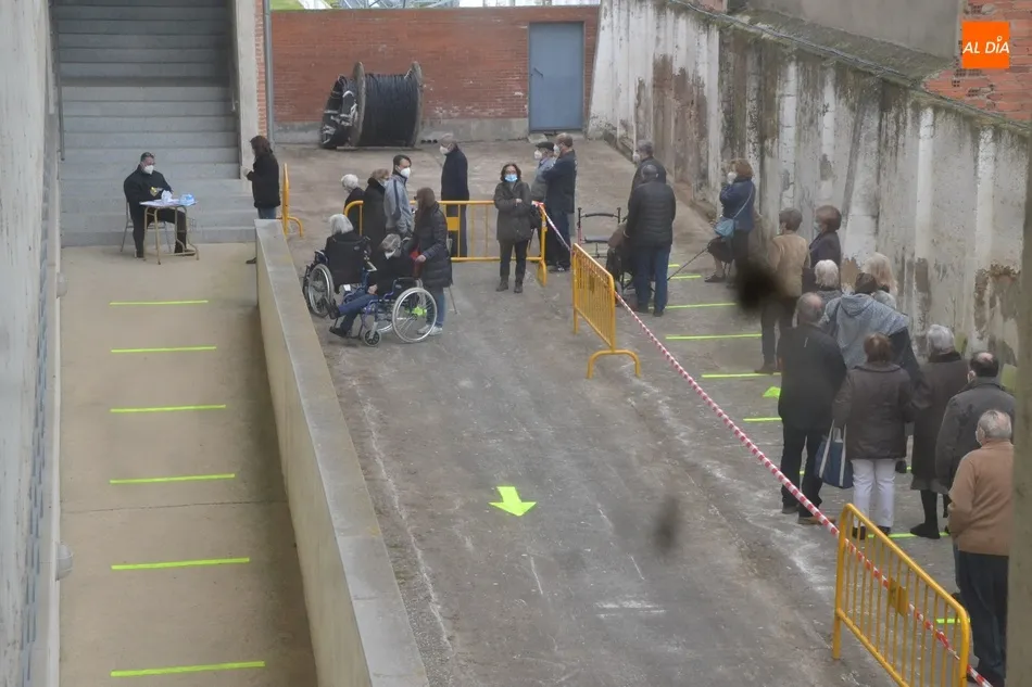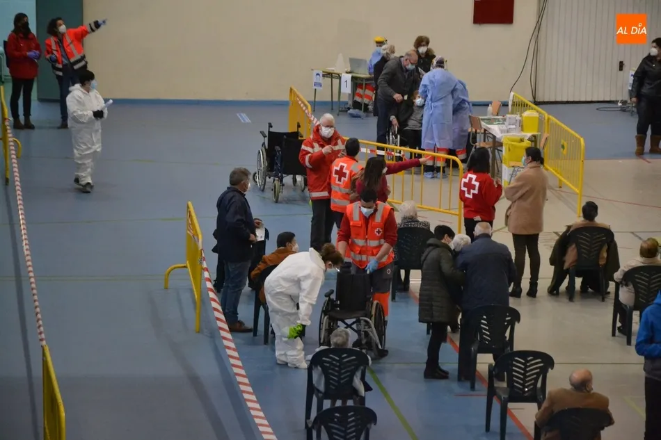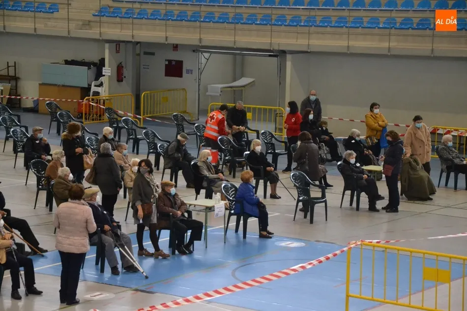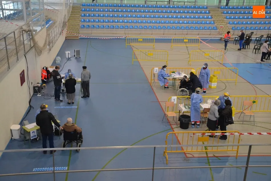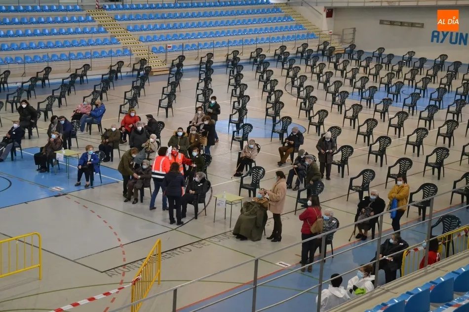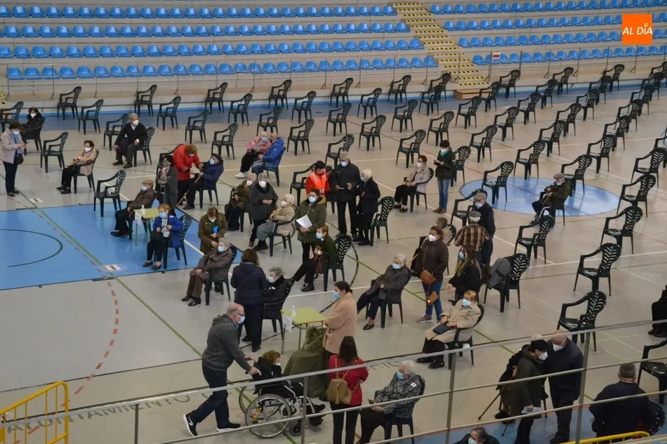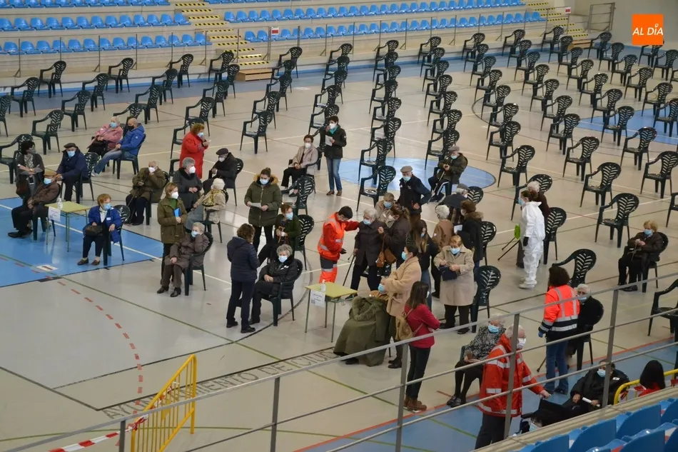 En total, se estimaba que estaban convocadas a vacunarse en el Pabellón en la jornada del lunes 335 personas, que fueron acudiendo a lo largo de la mañana, como es obvio debido a su edad, acompañadas de familiares, acudiendo la mayoría en vehículos (incluido taxis), lo que generó bastante tráfico en la zona. Tanto los vacunados como sus acompañantes fueron entrando al Pabellón por su acceso lateral, para así evitar que los ancianos tuvieran que subir o bajar el más mínimo escalón a la hora de alcanzar la pista principal de juego, que es donde se suministra la vacuna.