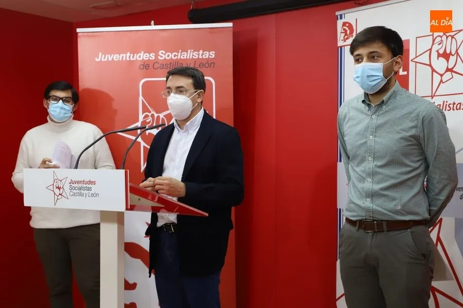 Los Secretarios Generales de las Juventudes Socialistas de Castilla y León y de Salamanca, Fran Díaz y Kevin Pérez, junto al procurador del PSOE por Salamanca, Fernando Pablos, han presentado el Plan que los jóvenes socialistas llevarán a la Junta donde se contemplan 90 medidas ?para evitar el éxodo juvenil que sufre y padece la Comunidad y posibilitar que puedan desarrollar aquí, en nuestra tierra un proyecto vital?.