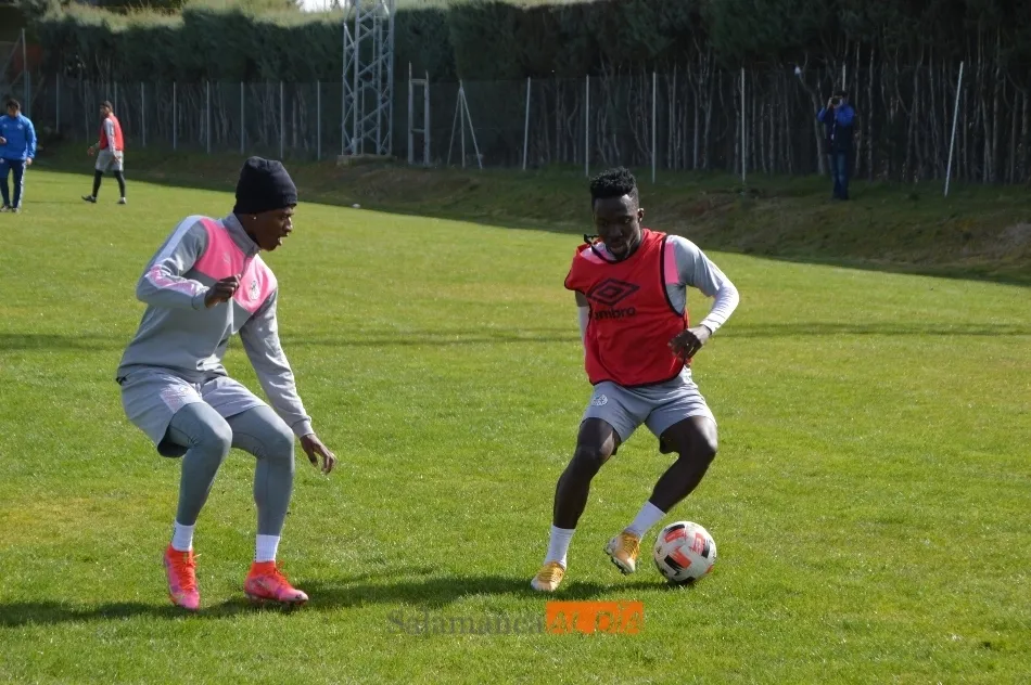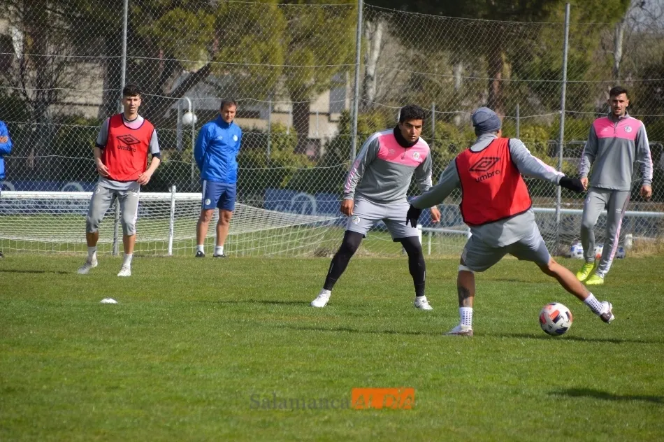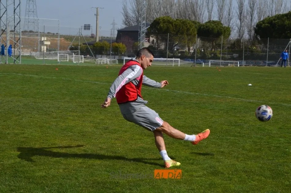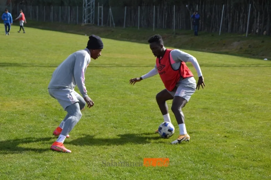 Juancho empezó a apretar para jugar con el Salamanca UDS, pero se retiró del entrenamiento. El colombiano se ejercitó al mismo nivel que el resto de sus compañeros durante buena parte de la práctica, aunque posteriormente se marchó al vestuario para no forzar la máquina en la mañana de este miércoles. De hecho, cabe la posibilidad de que el futbolista se resintiera de su dolor en el pie al golpear fuerte un balón, un hecho que es normal y que no debería impedirle seguir yendo a más cada día.