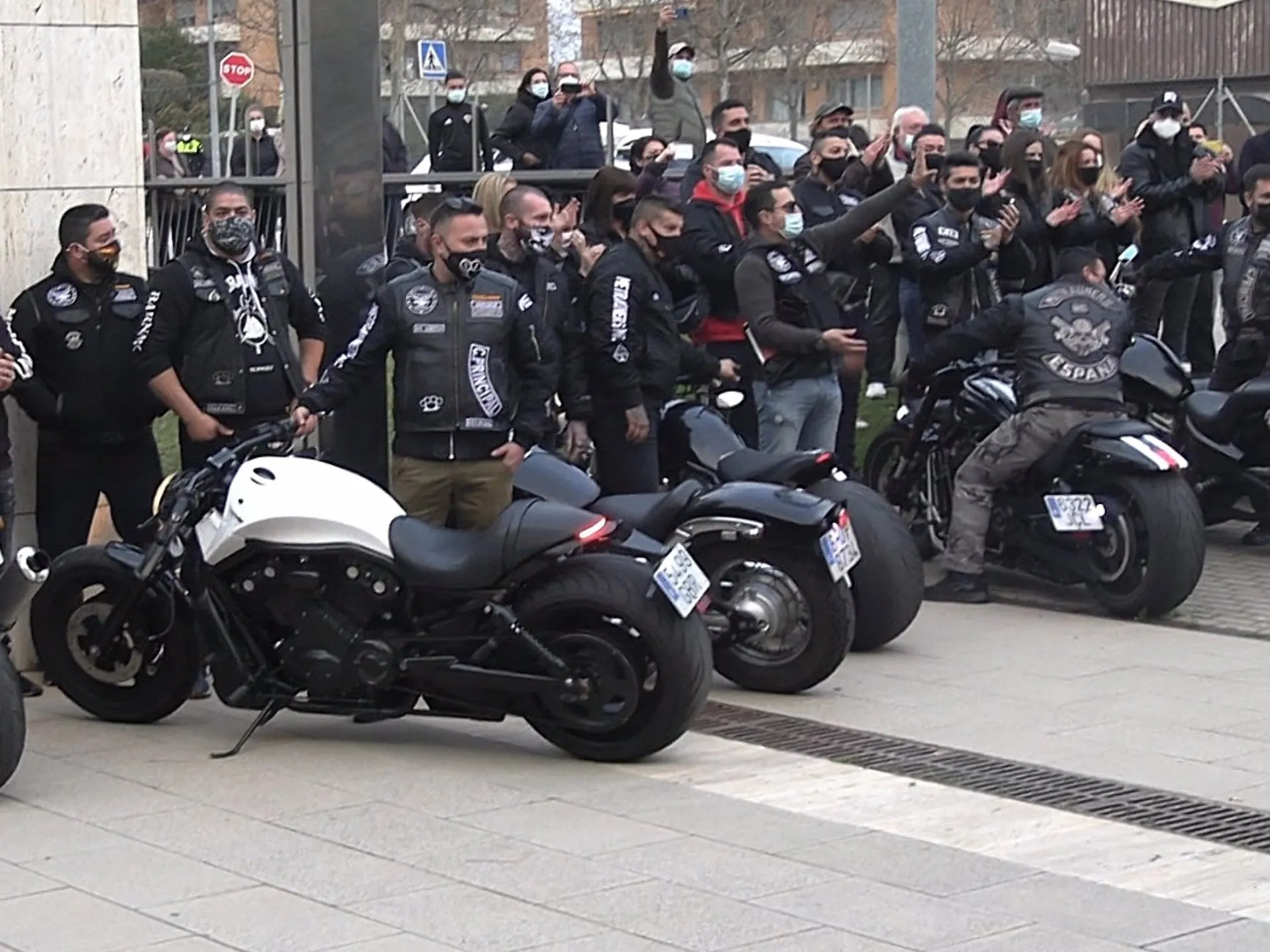 Junto a los familiares, amigos y compañeros de ?OT?, muchos moteros han acudido también a la salida y para homenajear al cantante han encendido sus motos para despedirle como se merecía