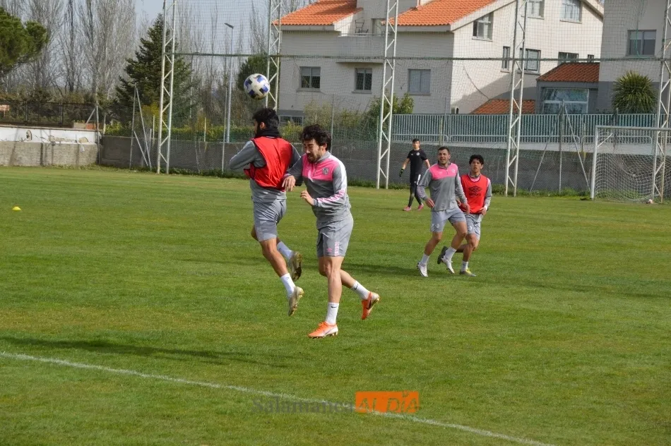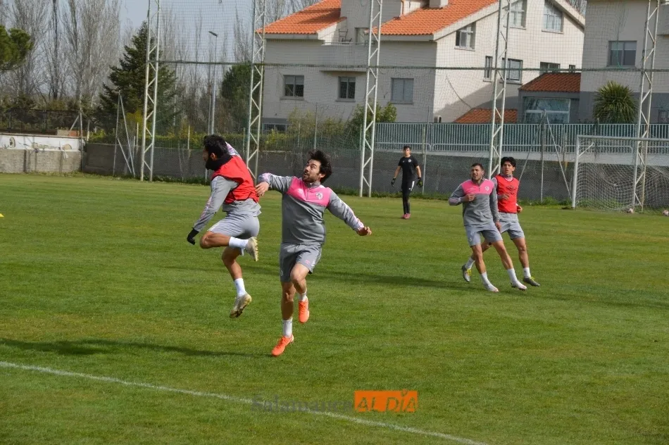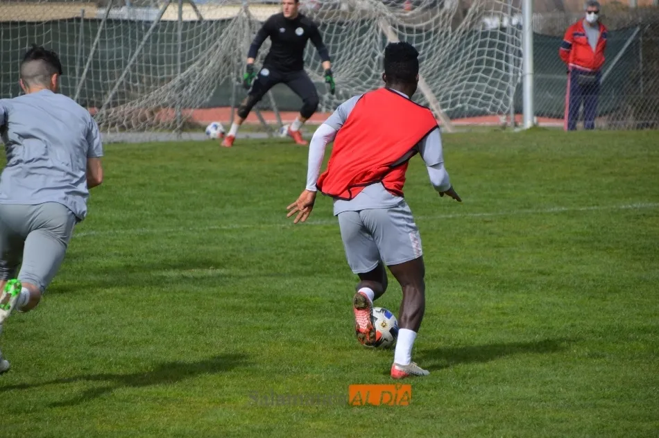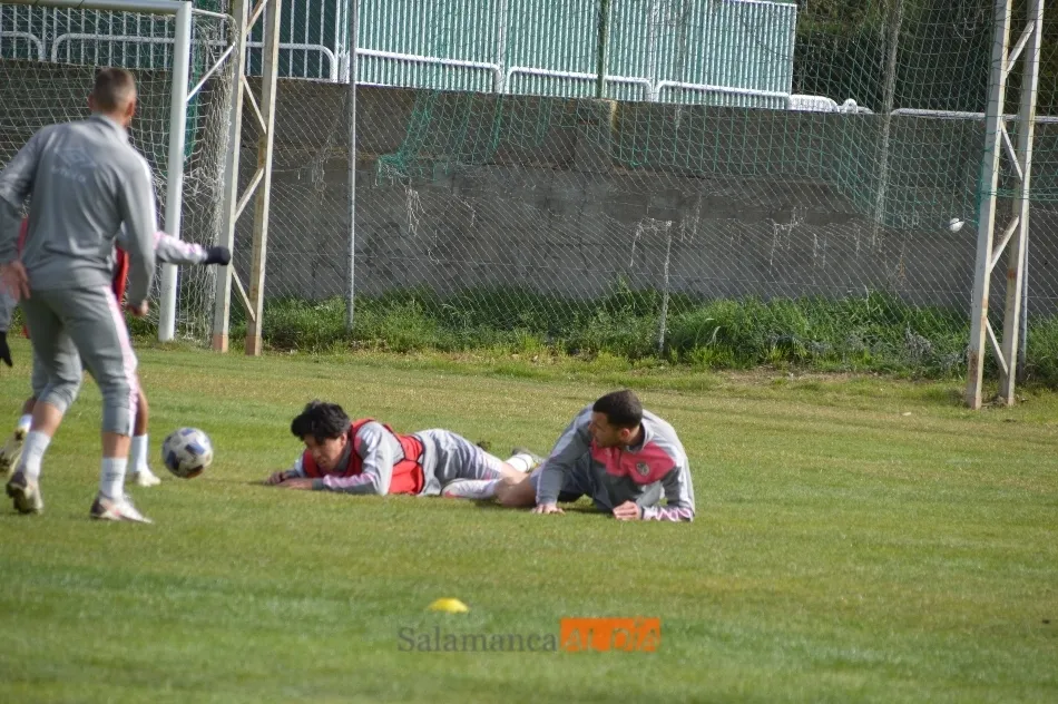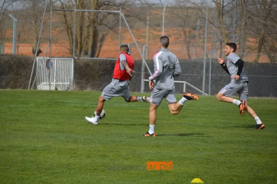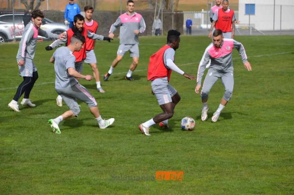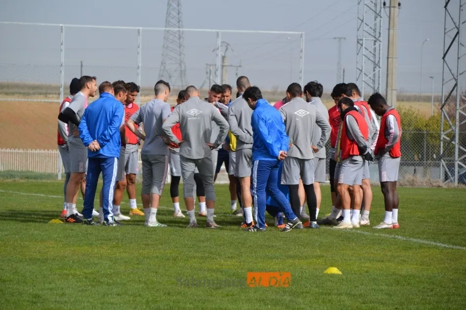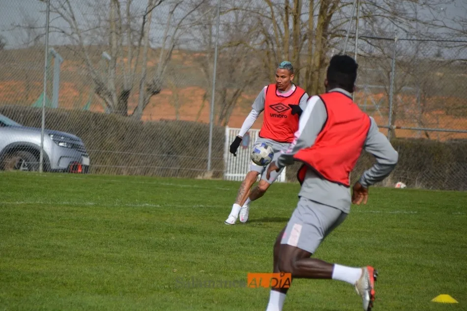 El Salamanca UDS puso toda la carne en el asador en el entrenamiento de este jueves para preparar la cita con el Zamora. El colombiano Juancho se volvió a retirar de la sesión tras completar buena parte de ella a un ritmo alto con el resto de sus compañeros, aunque no se marchó al Estadio Helmántico y se quedó en la repisa del Anexo charlando con Rafa Dueñas, Vicente García, Miguel, Manolín y José -del cuerpo técnico- en lo que la plantilla finalizaba la práctica.