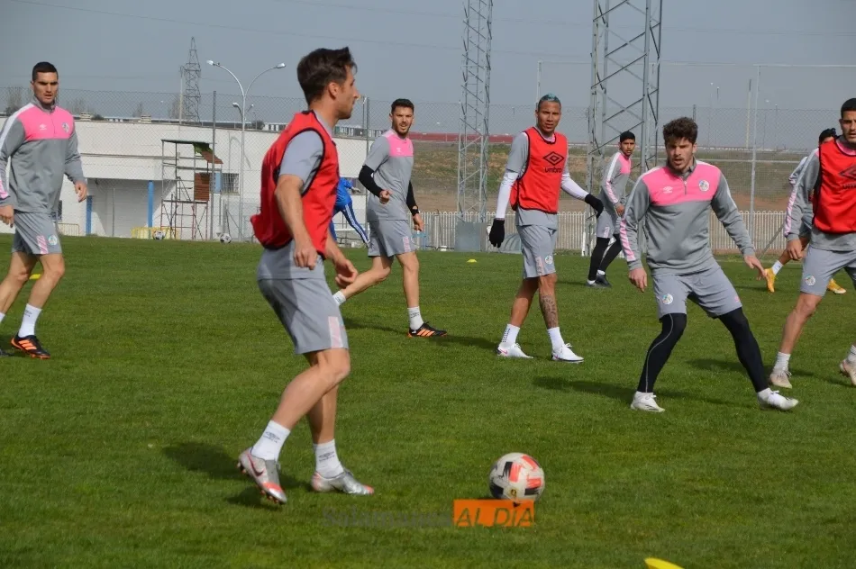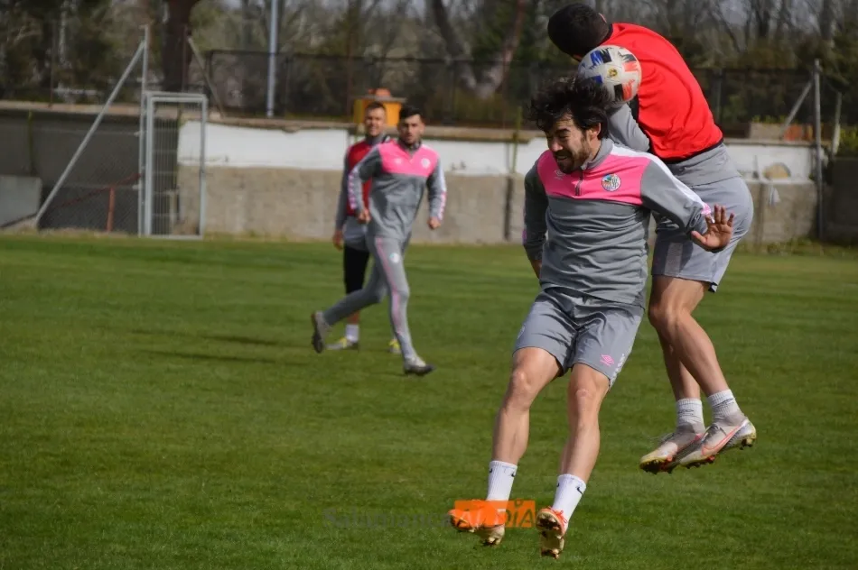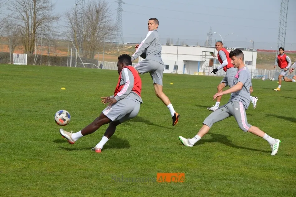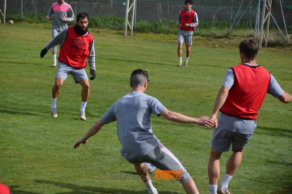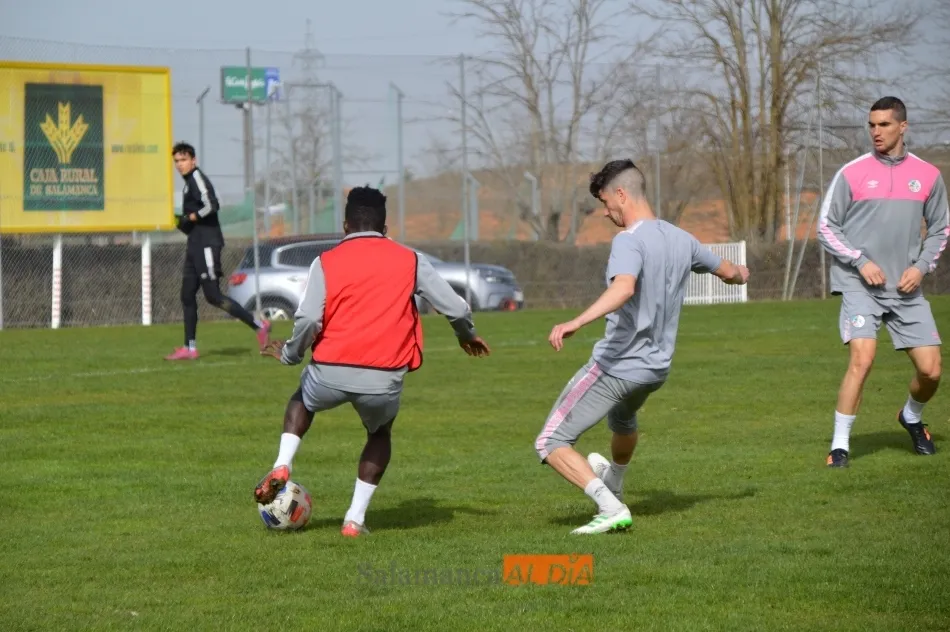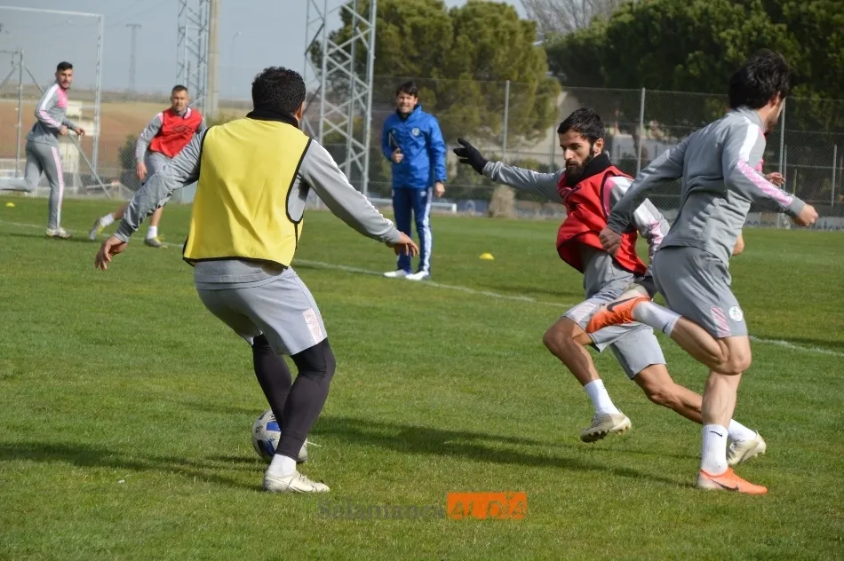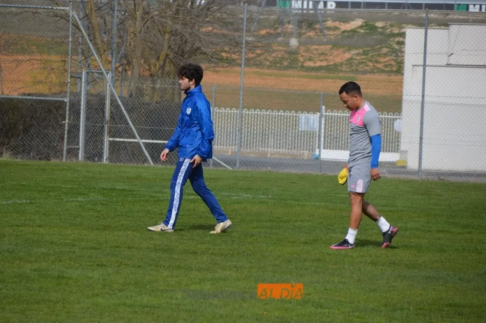 El Salamanca UDS puso toda la carne en el asador en el entrenamiento de este jueves para preparar la cita con el Zamora. El colombiano Juancho se volvió a retirar de la sesión tras completar buena parte de ella a un ritmo alto con el resto de sus compañeros, aunque no se marchó al Estadio Helmántico y se quedó en la repisa del Anexo charlando con Rafa Dueñas, Vicente García, Miguel, Manolín y José -del cuerpo técnico- en lo que la plantilla finalizaba la práctica.