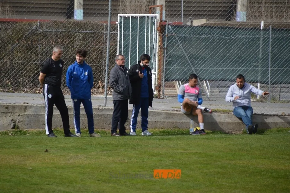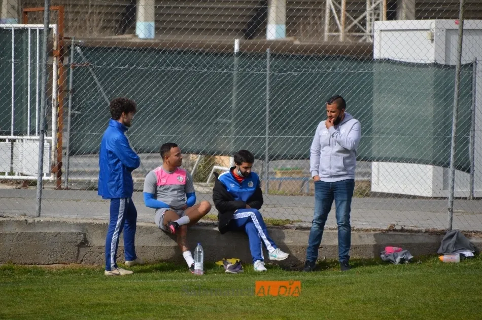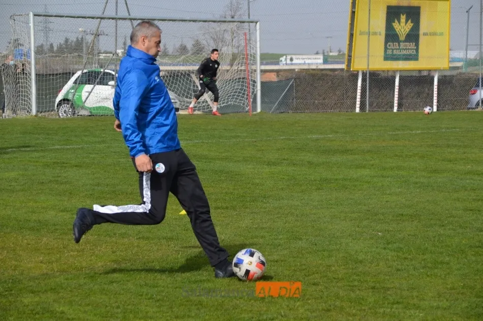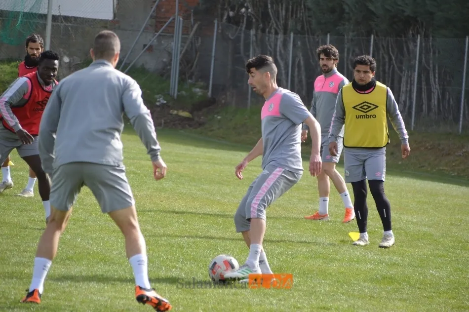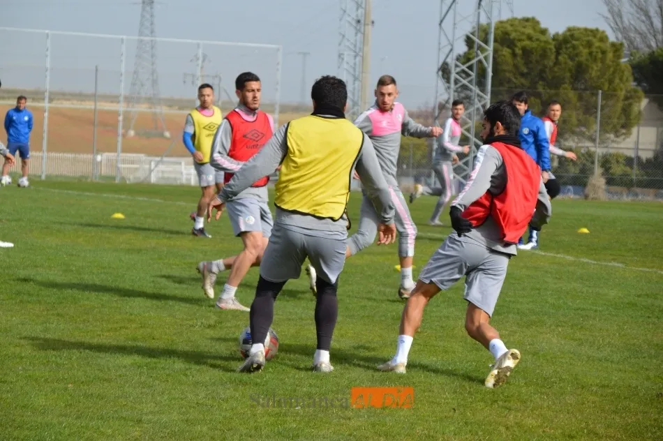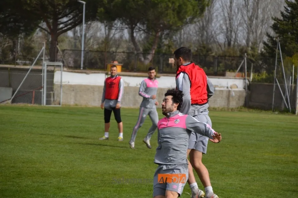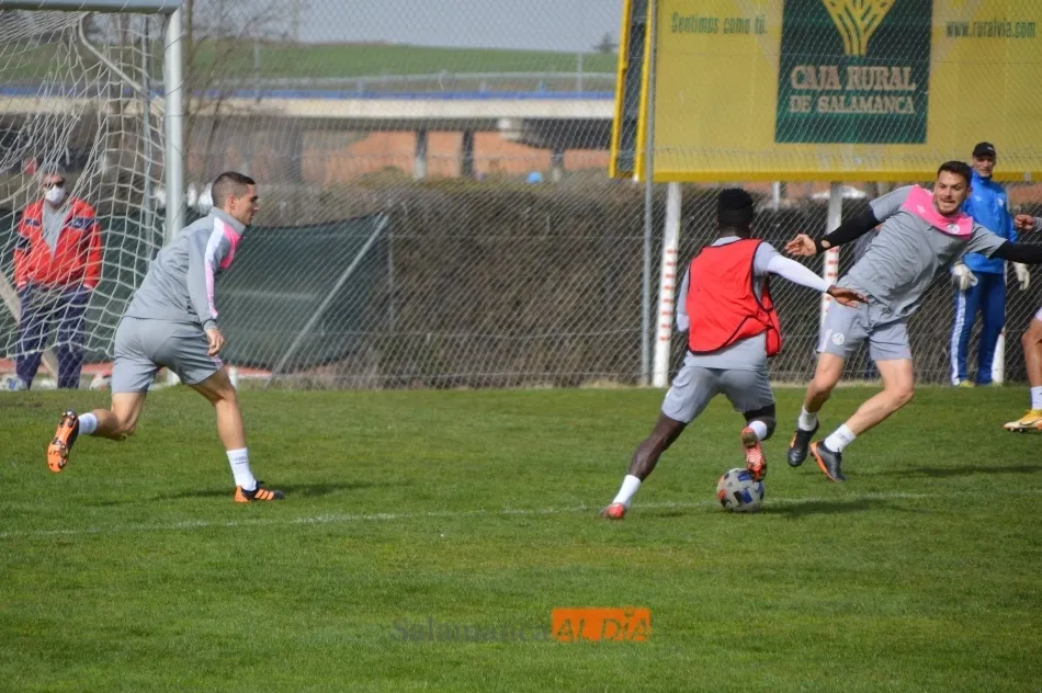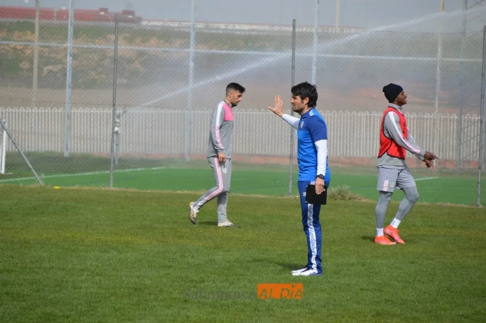 El Salamanca UDS puso toda la carne en el asador en el entrenamiento de este jueves para preparar la cita con el Zamora. El colombiano Juancho se volvió a retirar de la sesión tras completar buena parte de ella a un ritmo alto con el resto de sus compañeros, aunque no se marchó al Estadio Helmántico y se quedó en la repisa del Anexo charlando con Rafa Dueñas, Vicente García, Miguel, Manolín y José -del cuerpo técnico- en lo que la plantilla finalizaba la práctica.