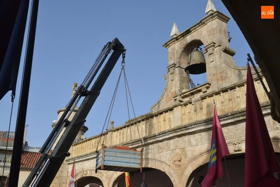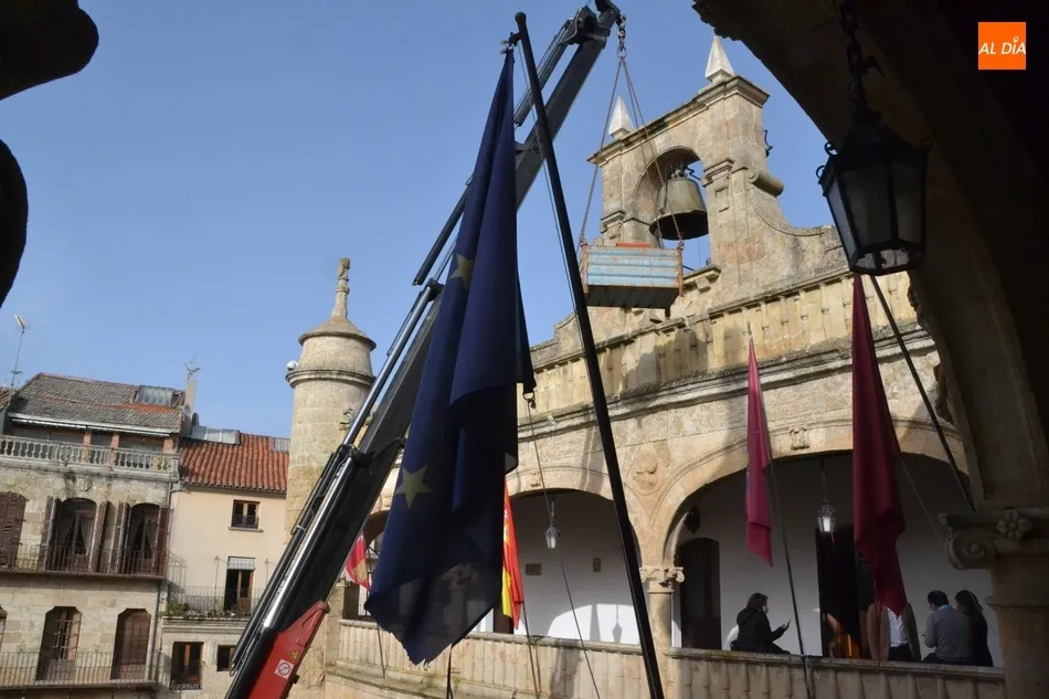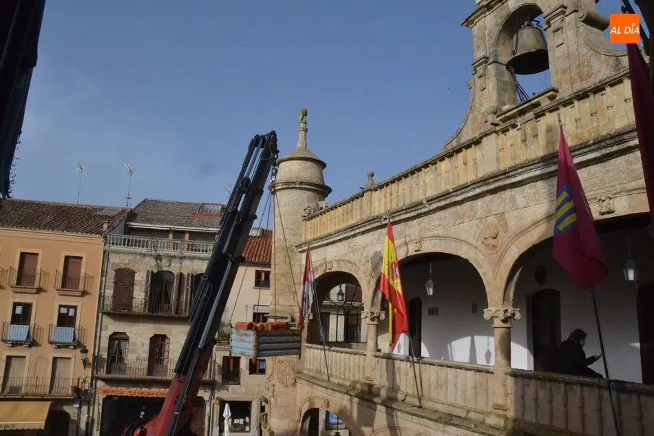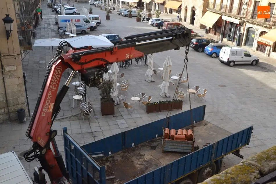 El Ayuntamiento de Ciudad Rodrigo ya tiene en marcha la operación de reparación de la cubierta de la Casa Consistorial, que acumulaba una capa de musgo que había provocado goteras en un espacio de gran valor como es el salón de plenos. Como se puede ver en las imágenes, en la tarde del miércoles se estuvieron subiendo mediante un camión-pluma nuevas tejas hasta la cubierta de la Casa Consistorial, para proceder a sustituir las antiguas. La realización de esta operación de reparación ha sido adjudicada por el Ayuntamiento mediante un contrato menor a Alberto Martín Rivero por un importe de 4.300? (que con el IVA correspondiente asciende a 5.203?), incluyéndose también en el mismo obras de albañilería en la Escuela Municipal Infantil José Manuel Hidalgo, ya que venía sufriendo igualmente problemas de goteras.