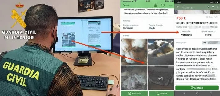 La Guardia Civil, en el marco de la 'Operación Retriever', ha detenido a dos personas, D.P.M.G. y M.C.N.C, de 34 y 35 años, respectivamente, por la comisión de nueve estafas en la venta de mascotas por Internet, dos de ellas en Salamanca.