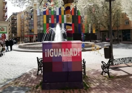 La fuente de la plaza del Oeste no faltará a su cita anual y se pone de morado en conmemoración del 8M, Día Internacional de la Mujer. El céntrico ágora se suma así a los dos armarios de luz intervenidos artísticamente en la misma plaza, que a diario m