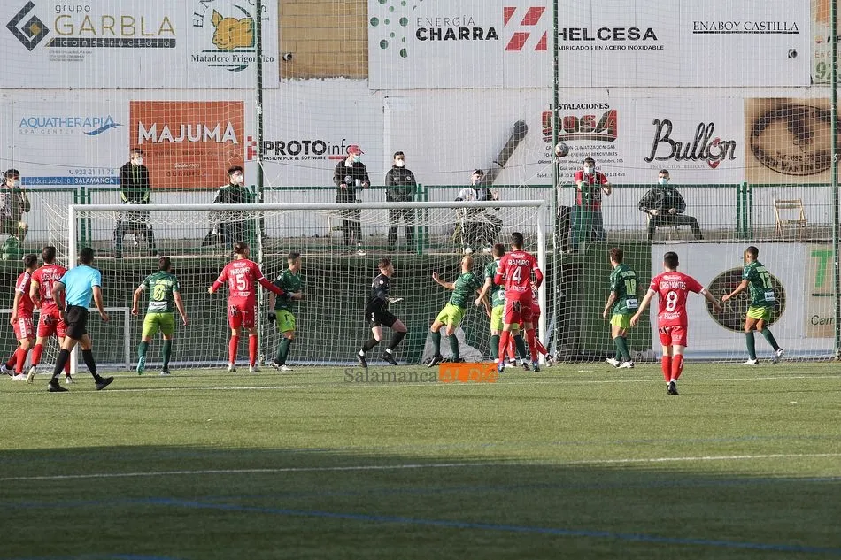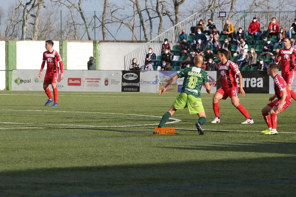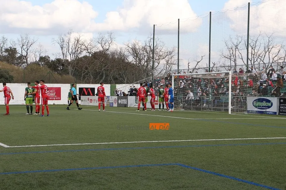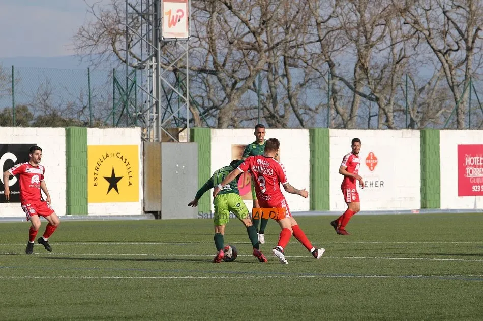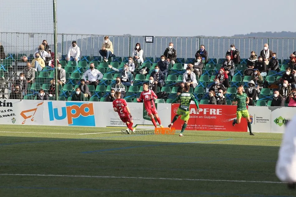 En la segunda mitad, el Guijuelo sufrió una vez más en esta temporada lo duro que es el fútbol al quedarse con 9 futbolistas sobre el terreno de juego tras las expulsiones de Cristóbal Gil y Razvan. En el caso de la roja del rumano, Nespral salió en el preciso momento -justo antes de ejecutar el lanzamiento- para marcar de falta un golazo en el primer balón que tocó. Además, los de rojo ya avisaron a sus vecinos con un tiro de Montes tras el adiós de Cristóbal, pero aquel remate se topó con el larguero.