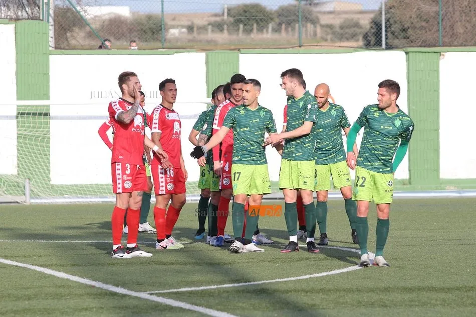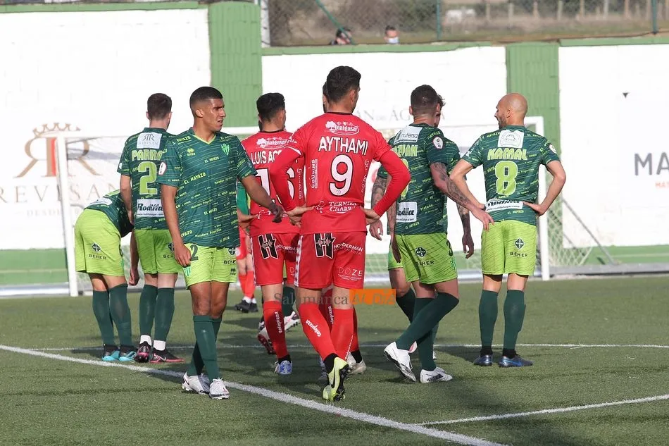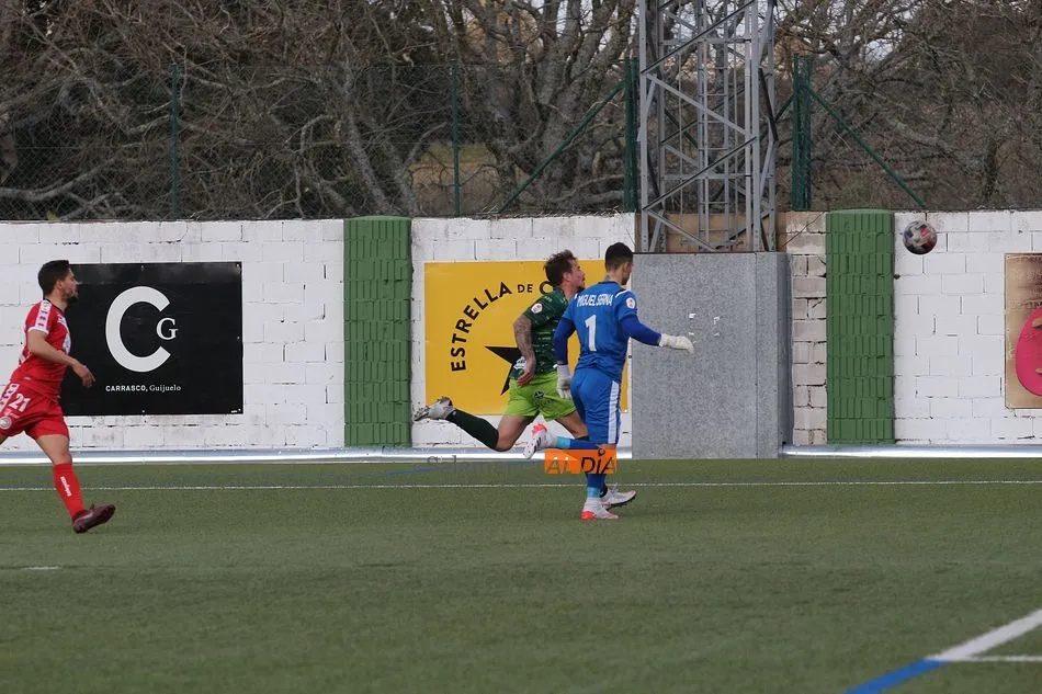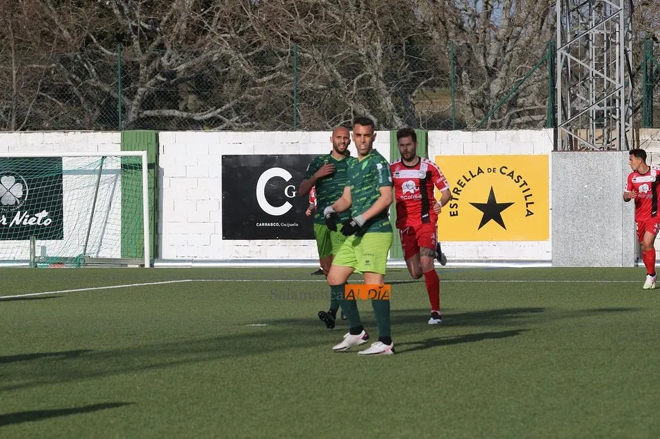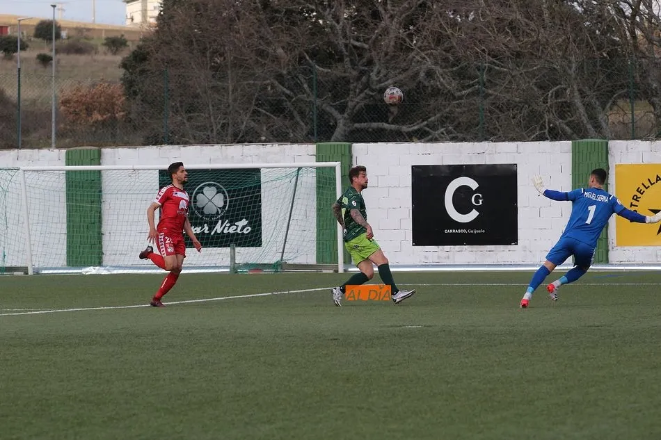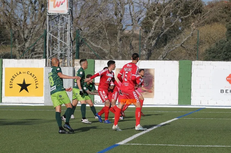 En la segunda mitad, el Guijuelo sufrió una vez más en esta temporada lo duro que es el fútbol al quedarse con 9 futbolistas sobre el terreno de juego tras las expulsiones de Cristóbal Gil y Razvan. En el caso de la roja del rumano, Nespral salió en el preciso momento -justo antes de ejecutar el lanzamiento- para marcar de falta un golazo en el primer balón que tocó. Además, los de rojo ya avisaron a sus vecinos con un tiro de Montes tras el adiós de Cristóbal, pero aquel remate se topó con el larguero.