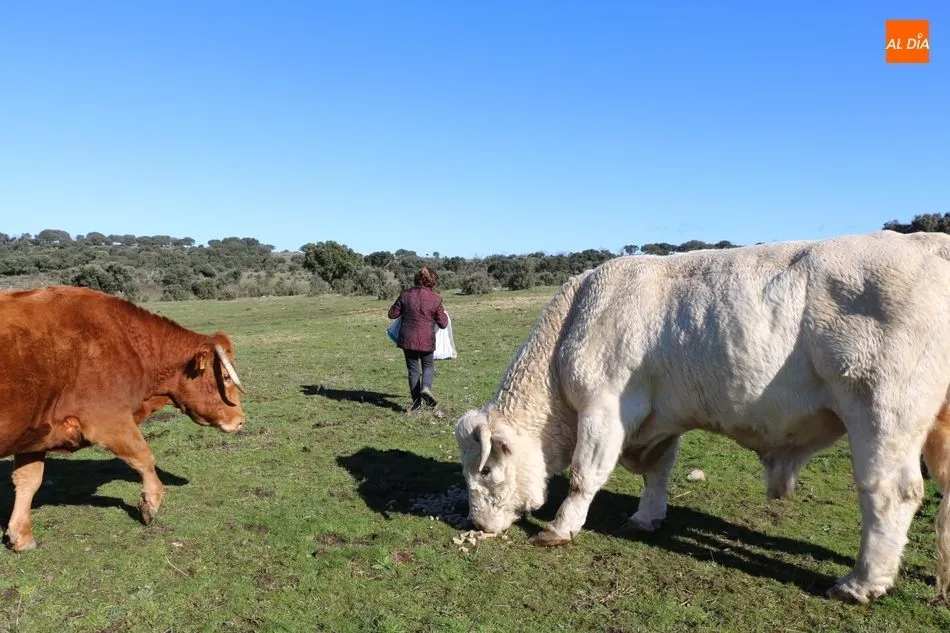 Su día a día comienza a las ocho de la mañana con la visita al ganado que tienen en una parcela en Majuges, después atiende con su marido las ovejas paridas, y a continuación el cebadero. Después comienza el recorrido por las distintas parcelas en las que reparte su ganado, Vitigudino, Guadramiro y Gema. Estas labores las compagina con la casa y el papeleo de una explotación con tres códigos de pastos, trámites que ahora realiza con el ordenador y que le ha facilitado el programa MOGA. También saca tiempo para el huerto, ?que me gusta mucho?.