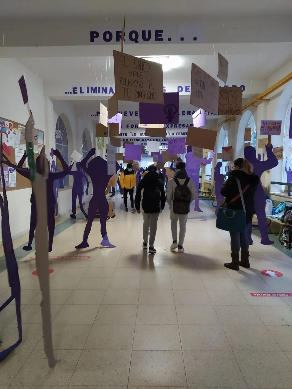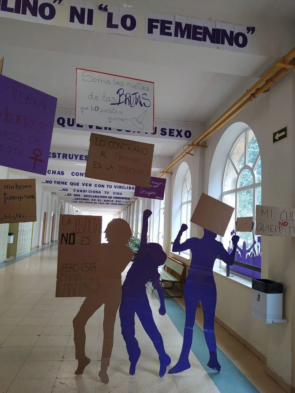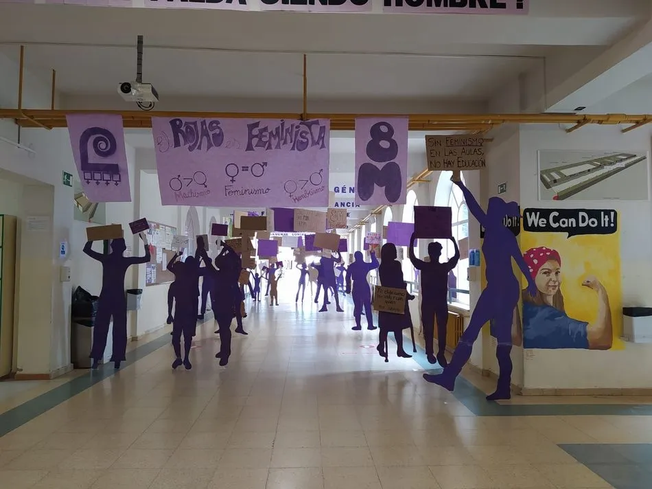 En el IES Fernando de Rojas han tenido una estupenda idea para conmemorar el Día Internacional de la Mujer con una iniciativa muy especial: Han decidido no organizar ni participar en ninguna manifestación por responsabilidad y, en lugar de ello, han colocado siluetas, carteles y pancartas por los pasillos, todo diseñado y realizado por los alumnos de este centro salmantino.