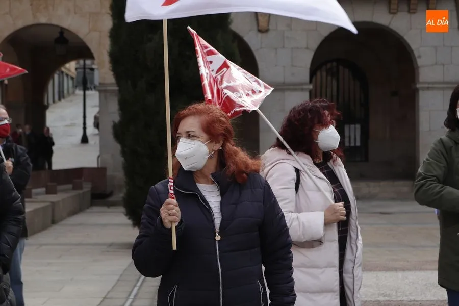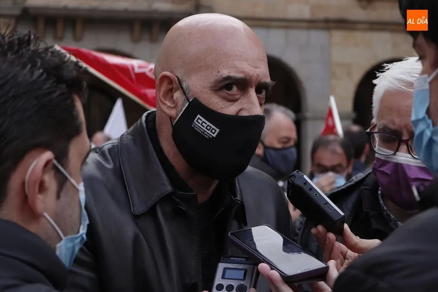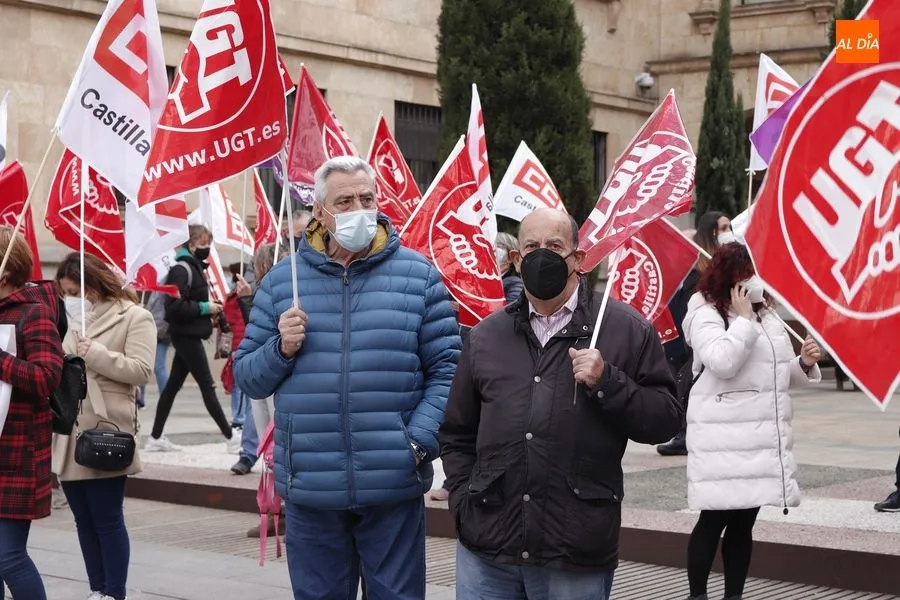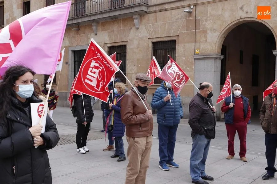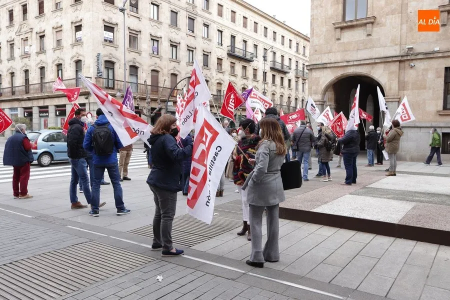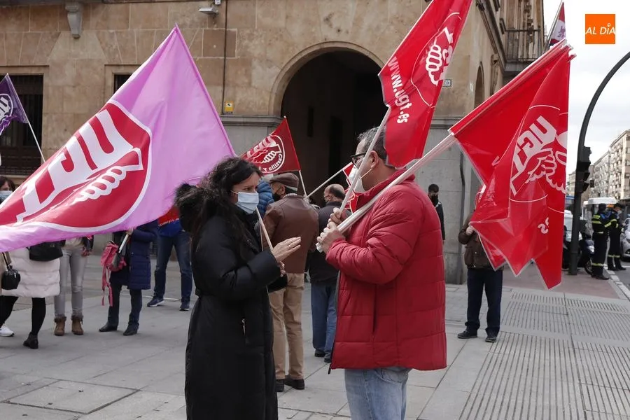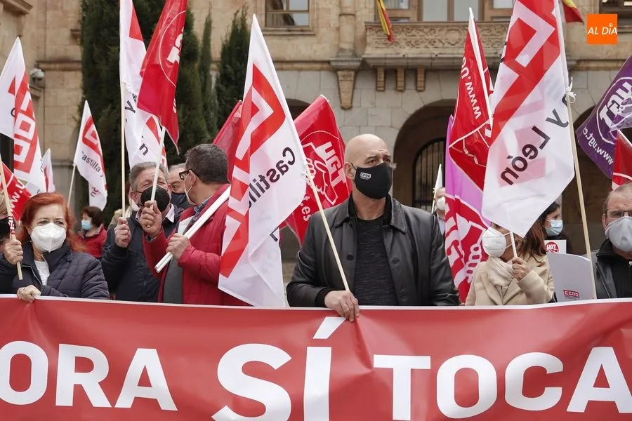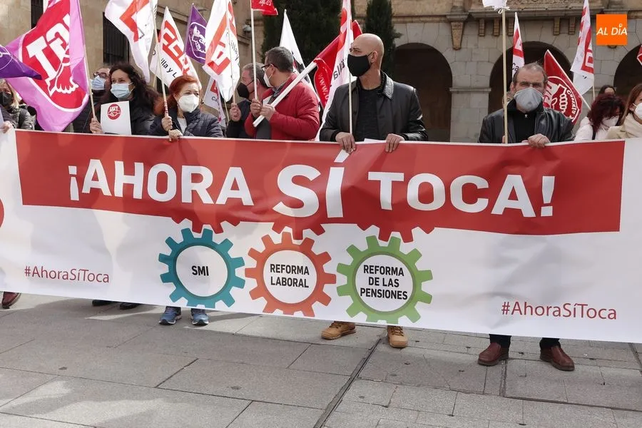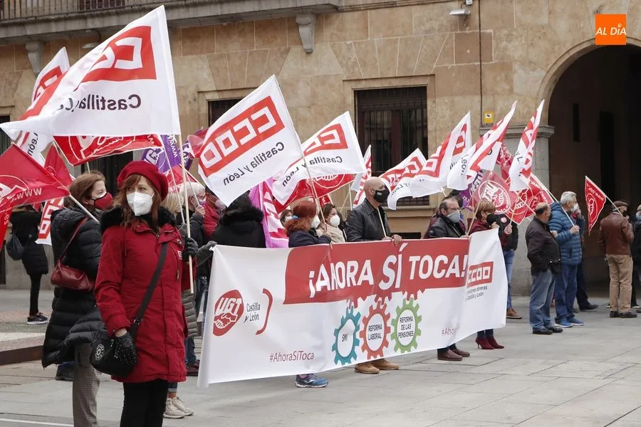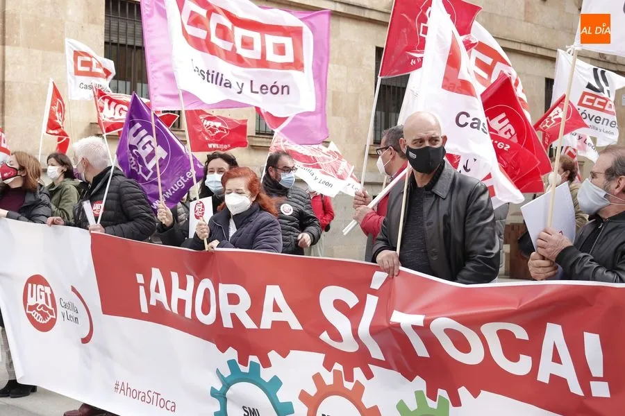 Delegados de ambos sindicatos se concentraban en la plaza de la Constitución, frente a la Subdelegación del Gobierno, portando una pancarta en la que podía leerse ?Ahora sí toca?. ?Que hable menos y haga más", reclamaban los sindicalistas que han acusado al Gobierno de la nación de seguir sin hacer caso a las demandas de los trabajadores.