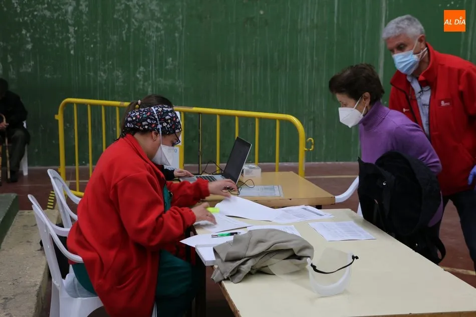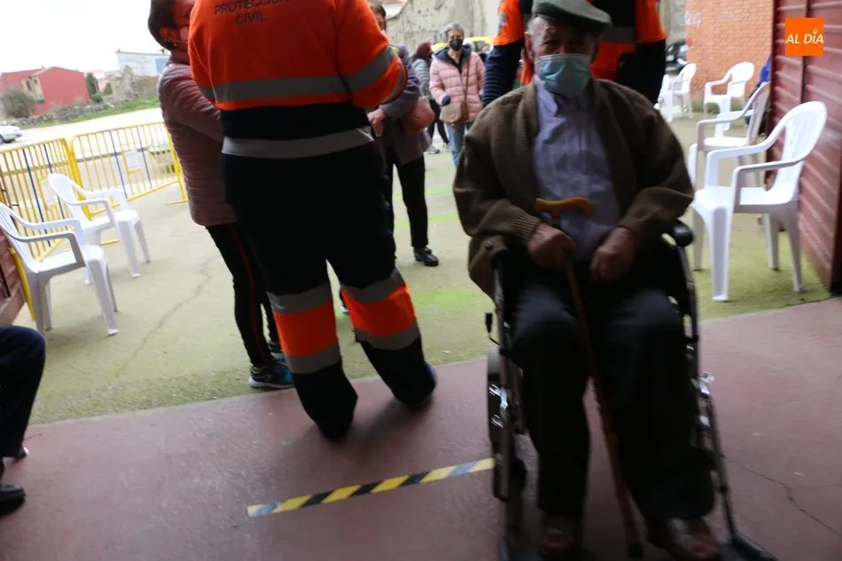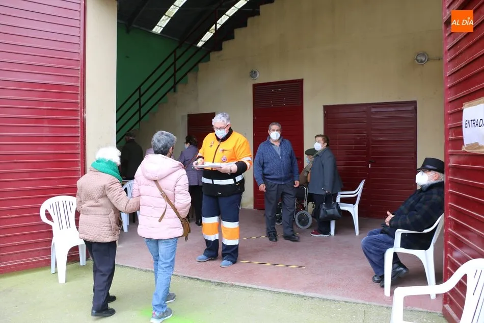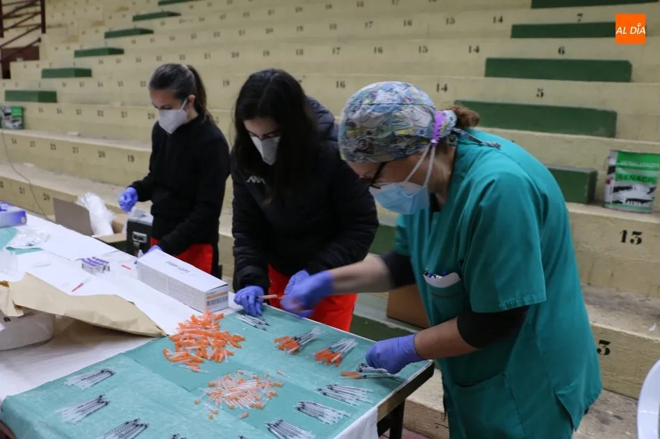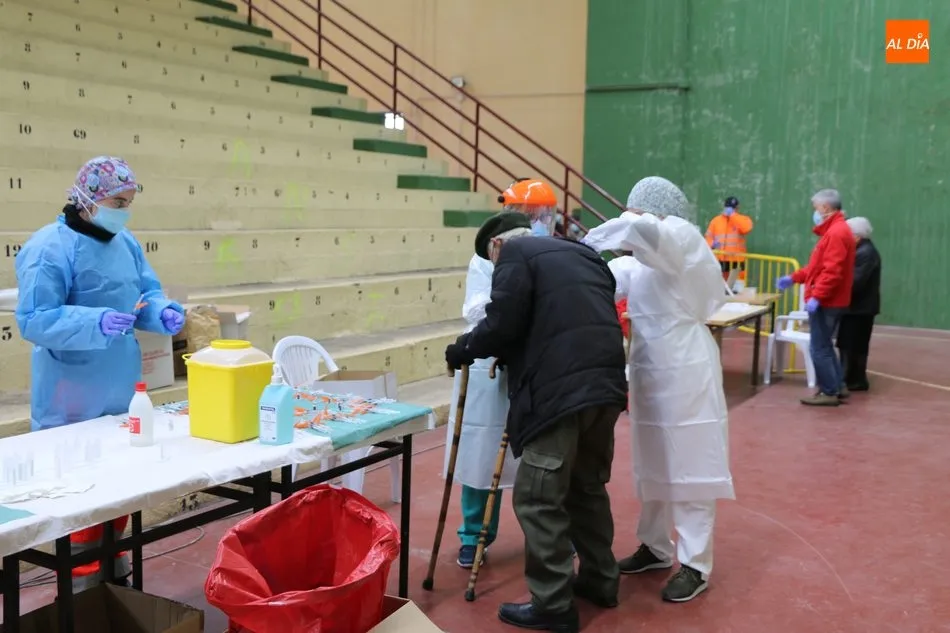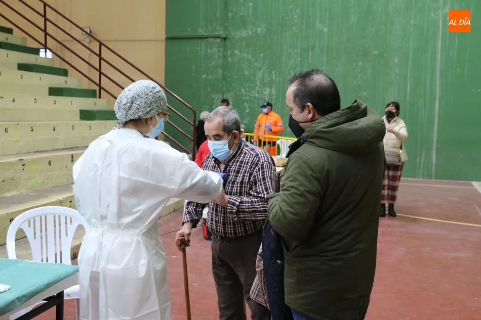 Las primeras personas en recibir la vacuna correspondían a un matrimonio procedente del municipio de Cabeza del Caballo. El proceso de vacunación comenzaba pasadas a las 11.15 horas y tras la preparación de las 150 dosis. Una vez se procedía a la administración de la vacuna, los vacunados pasan a una zona de reposo en previsión de una posible reacción durante los primeros 15 minutos tras recibir la dosis.