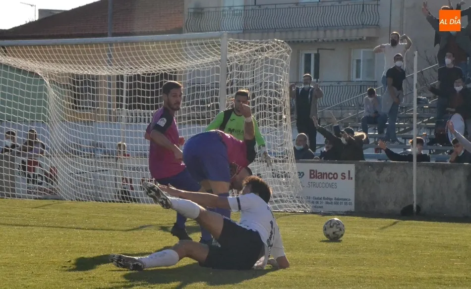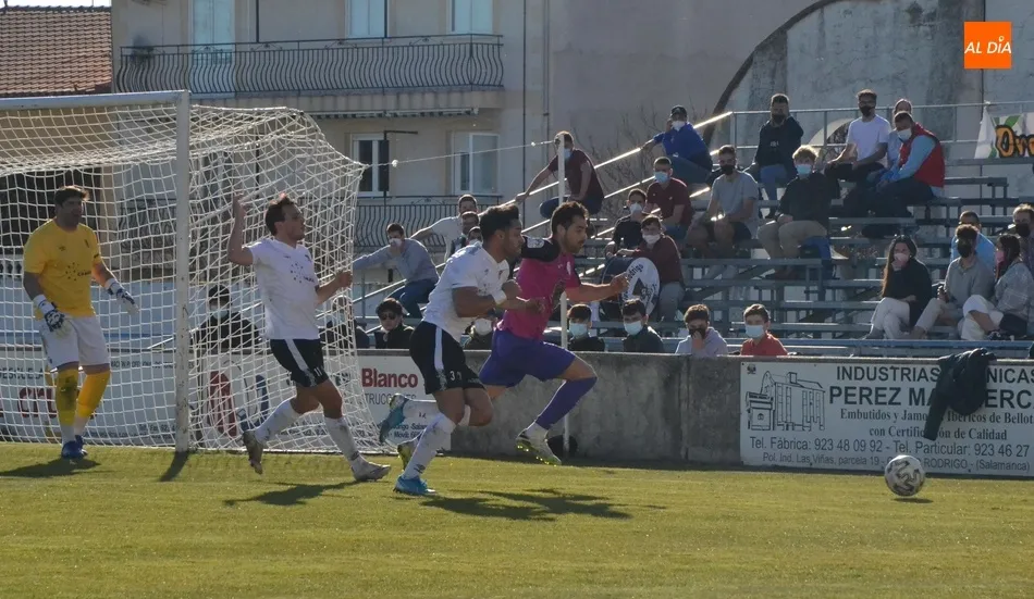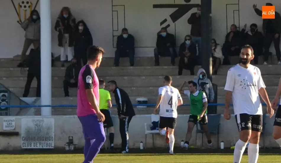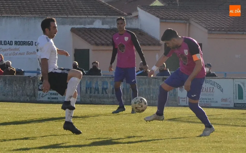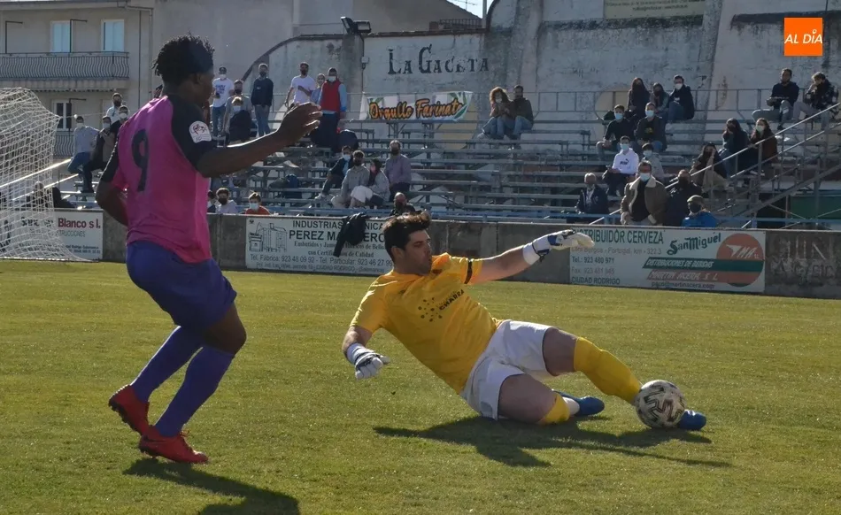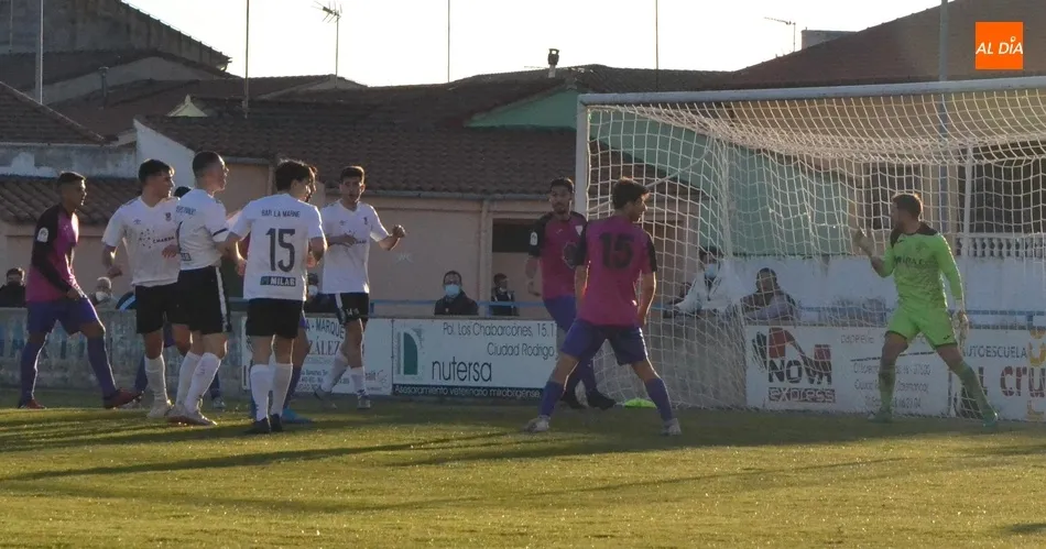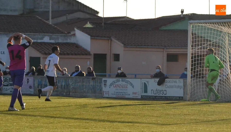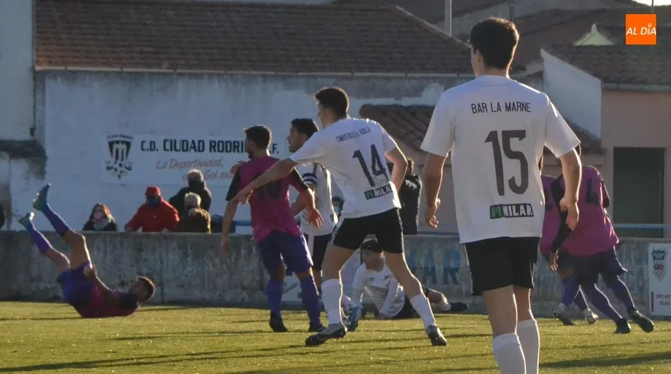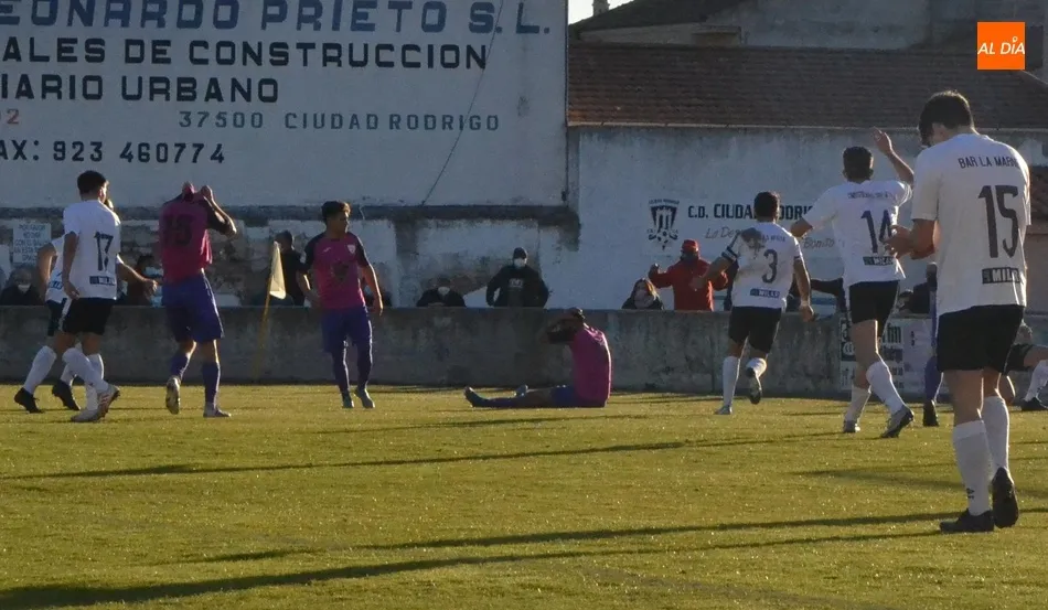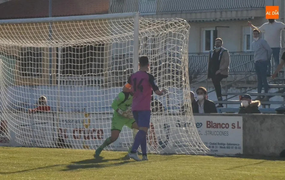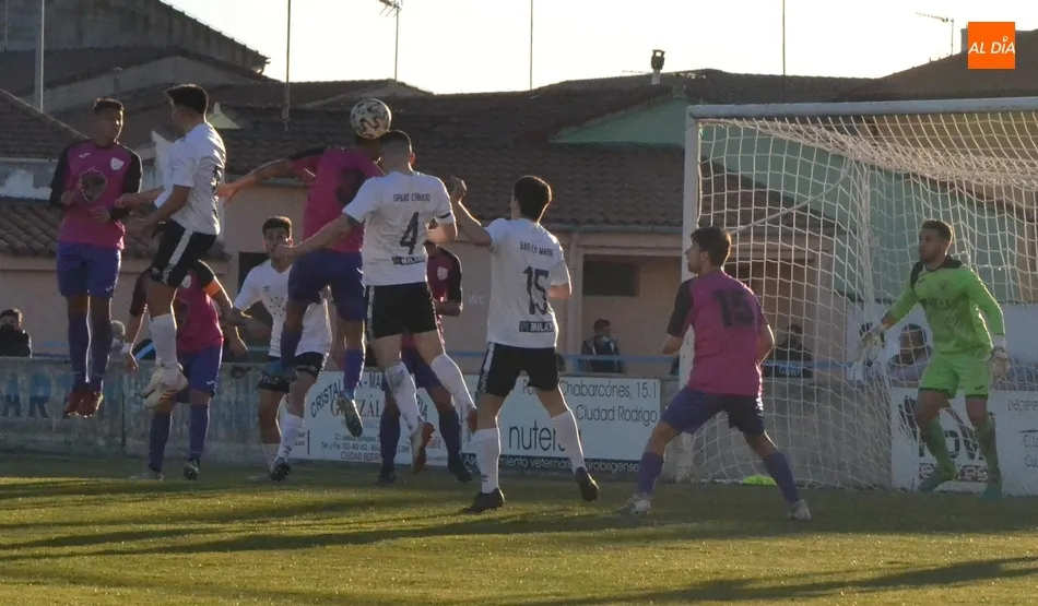 Superado este ?susto?, el Ciudad Rodrigo recuperó sensaciones, yéndose un poco hacia arriba e intentando agobiar, aunque de nuevo sin poder poner el balón entre los tres palos: Alberto García botó dos faltas, la primera de las cuales no llegó a ser rematada por poco ni por Manu Blanco ni por David Risueño, mientras que la segunda se fue rozando el palo izquierdo, al igual que ocurrió con un disparo raso desde la frontal de Pablo López (que tocó alguien por el camino, suponiendo un saque de córner). De tanto llegar al área, el Ciudad Rodrigo acabó por sacar en el 80? un penalty, que mandó para adentro Alberto García (el portero llegó a rozar el balón).