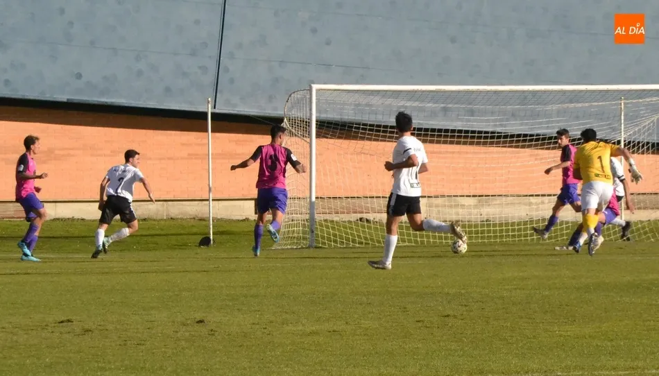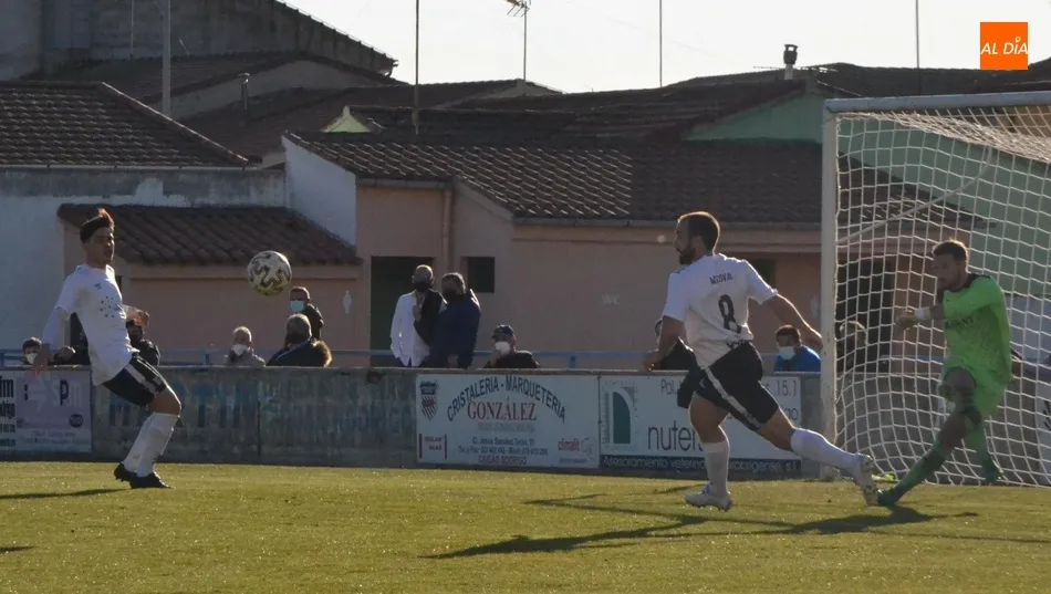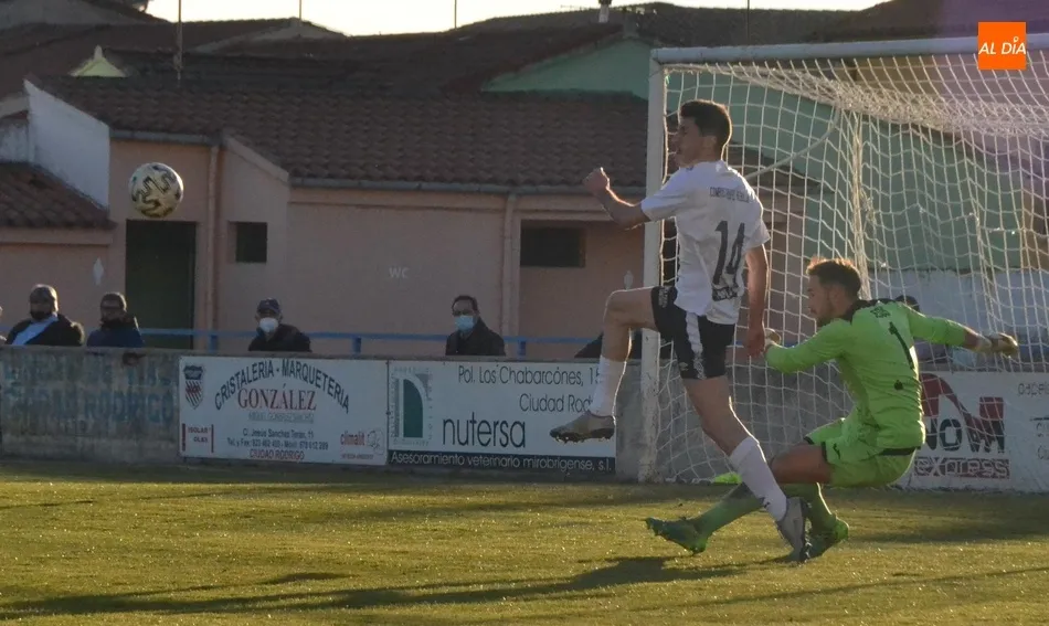 Sí estuvo más exigido en el 53?, en la primera gran ocasión del encuentro: un balón desde la derecha hacia el área donde un jugador se quedó frente al guardameta mirobrigense, quién lo tapó a la perfección, yéndose hacia la izquierda, donde le tapó Adrián Gallego, acabando la jugada con Pepo atrapando el balón en el suelo. No hubo tanto acierto a la hora de defender otra acción en el 55?: el Ribert mandó otro balón al área, en este caso desde la izquierda, no acertando el Ciudad Rodrigo a despejar, lo que hizo que quedase franco para Gustavo, quién lo mandó por bajo al fondo de la red.