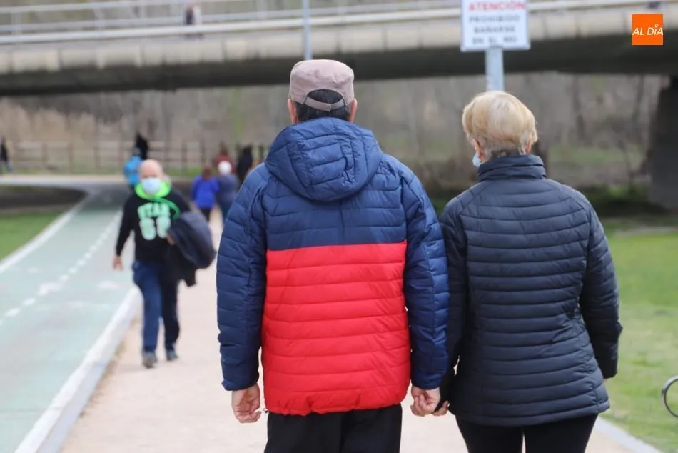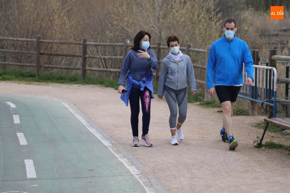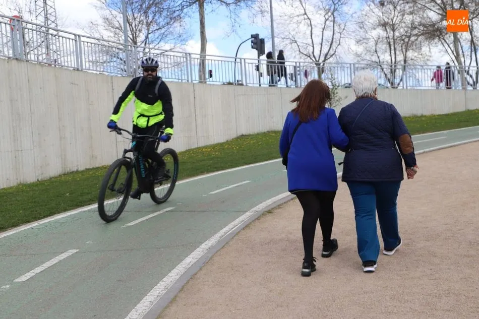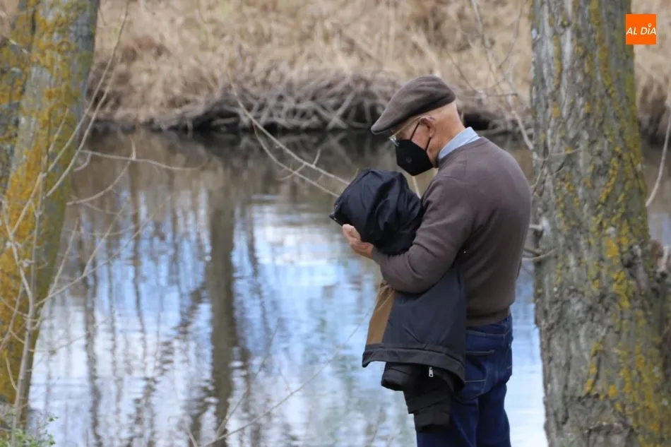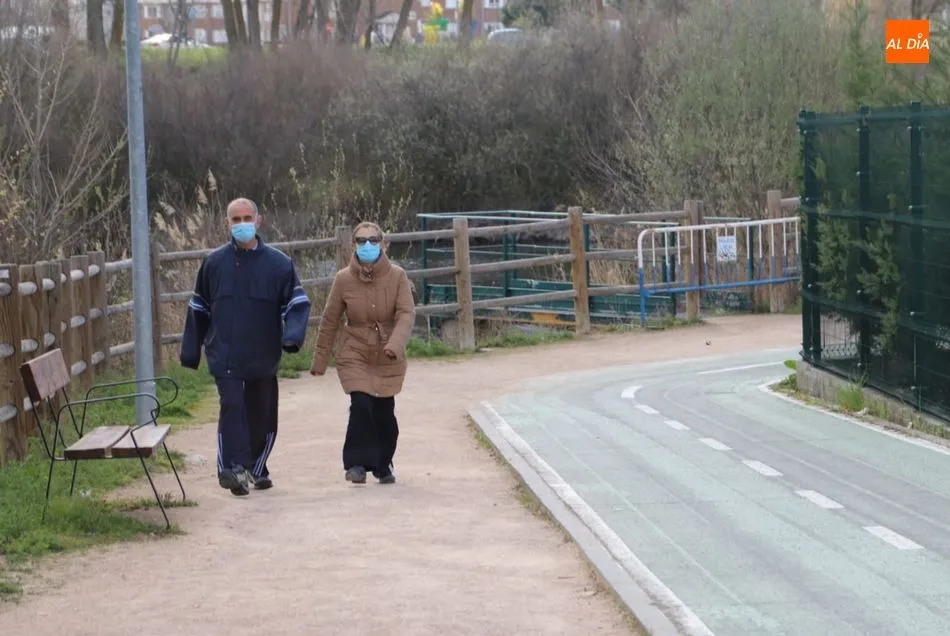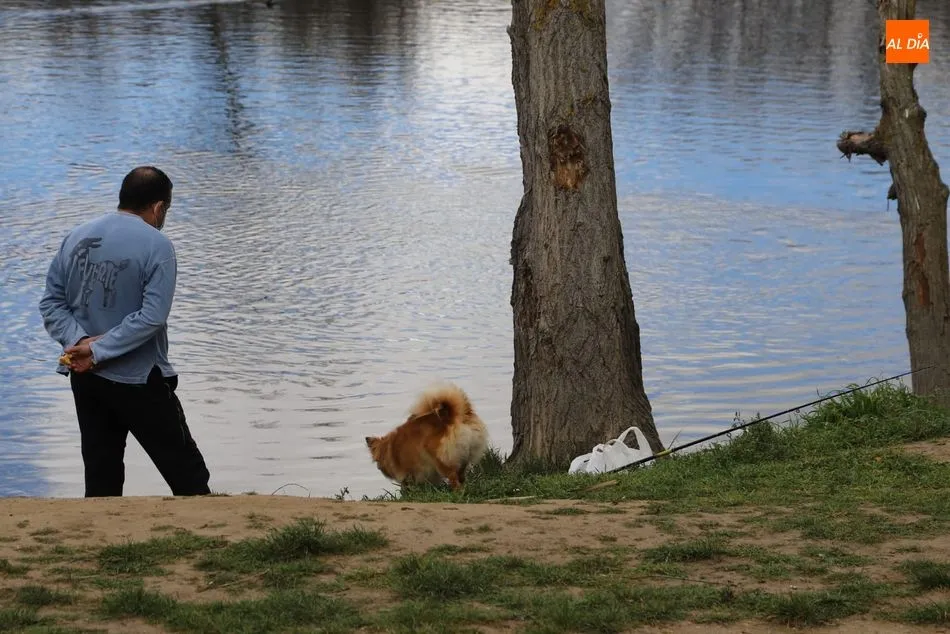 Aunque las temperaturas aún no acompañan, numeroso público pasea por la ribera del Tormes disfrutando del último día de la semana