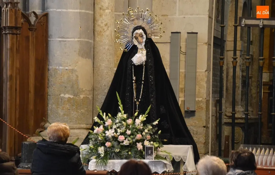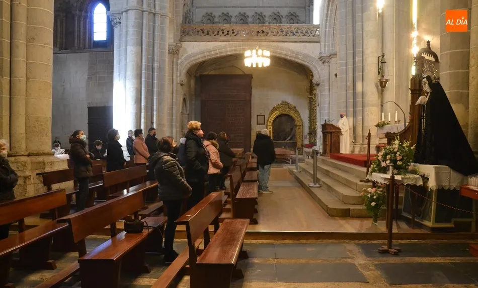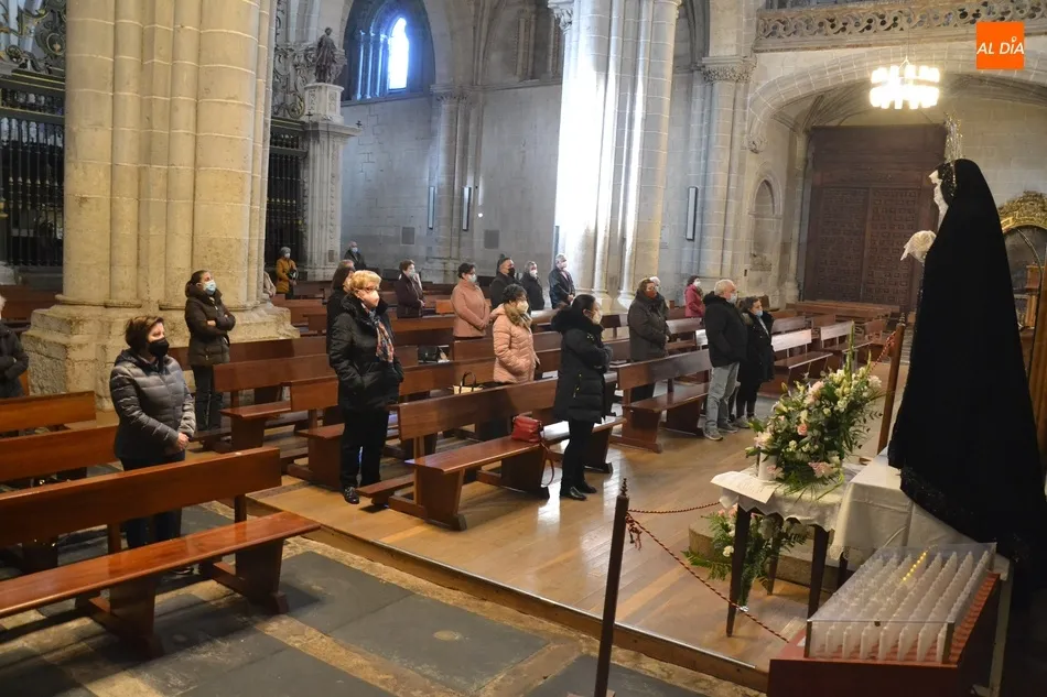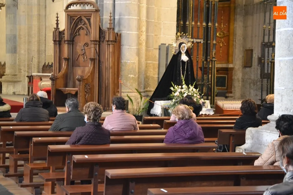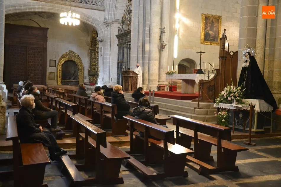 En la tarde del jueves se puso en marcha la Novena en honor a la Virgen de La Soledad que se va a desarrollar como cada año en la Catedral de Santa María de Ciudad Rodrigo en los días previos al Viernes de Dolores. Los actos comenzarán cada día a las 18.00 horas, incluyendo el rezo del Santo Rosario, una solemne misa y los rezos propios de la novena. En esta jornada de apertura, el presidente del Cabildo Catedralicio, Ángel Martín Carballo, fue el encargado tanto de liderar el rezo del Rosario como de presidir la misa y los rezos posteriores, a los que asistieron más de una treintena de fieles, entre ellos el nuevo presidente de la Cofradía, Tomás Domínguez Cid. En la tarde final de la novena, el viernes 26, junto a los cultos de todos los días habrá una reflexión a cargo de Ángel Martín Carballo como alternativa al tradicional sermón de la noche del Viernes Santo previo a la procesión de la imagen de La Soledad, que este año como se sabe no se puede celebrar.