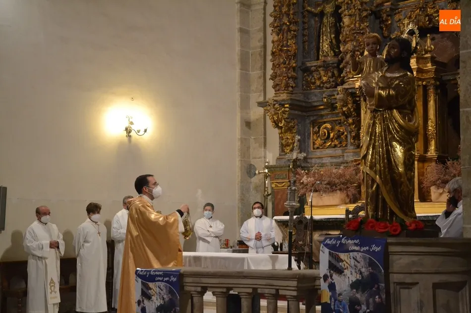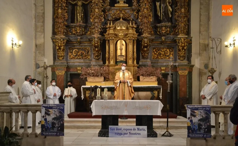 Integrantes de los distintos sectores de la Comunidad Educativa del Seminario Diocesano San Cayetano de Ciudad Rodrigo se reunieron en la tarde del viernes en la Capilla Mayor de la institución para asistir a una solemne eucaristía con la cual conmemoraron el Día del Seminario 2021 que aparecía en el calendario esta jornada coincidiendo con la festividad de San José. La celebración eucarística ?que fue emitida a través de las redes sociales del Seminario- fue presidida por el rector de la institución, Anselmo Matilla, quién estuvo acompañado por unos cuantos sacerdotes más, entre ellos el anterior rector, Juan Carlos Sánchez.
