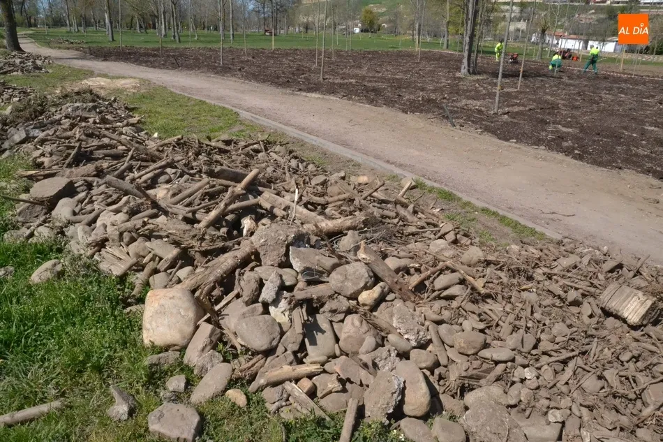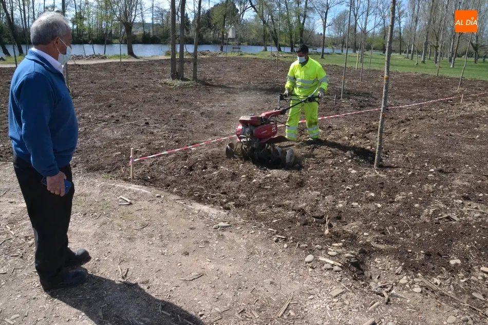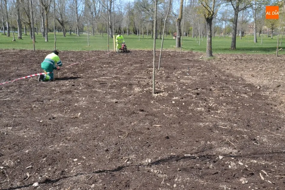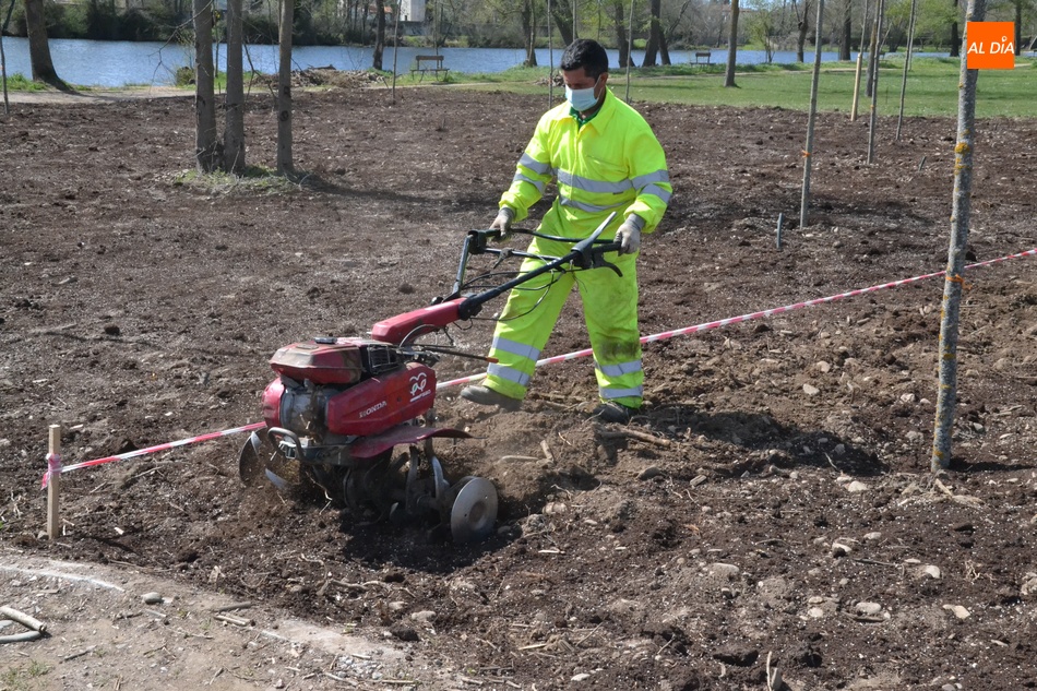 Se están intentando extraer todas las piedras del terreno en el que se acabará plantando césped
