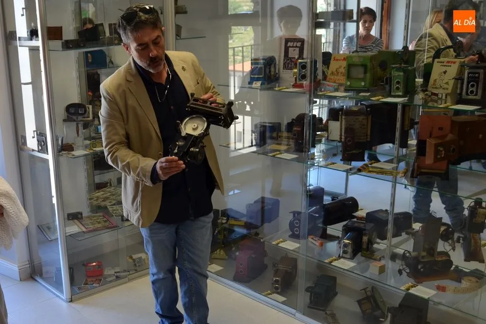 En la exposición de Béjar se pueden ver desde estas cámaras de minutero hasta la Epson, la cámara de fuelle más pequeña del mundo; o una Leica, que se llevaba en la cintura y era la más rápida de su época con mecanismos de placas de cristal; algunas Voigtlander, el primer fabricante en hacer lentes de objetivos calculadas matemáticamente; ejemplares de las primeras réflex, otras denominadas autográficas porque detrás tenían un puntero que permitía por una pequeña ventana escribir la fotografía que se había hecho. Hay también cámaras de cajón, algunas de las primeras polaroid de instantáneas y un sinfín de los diferentes modelos que fueron perfeccionando el mundo de la imagen y la fotografía a lo largo del tiempo, pasando de grandes, lentos y expectaculares armatostes a otros tipos mucho más dinámicos, reducidos y operativos.