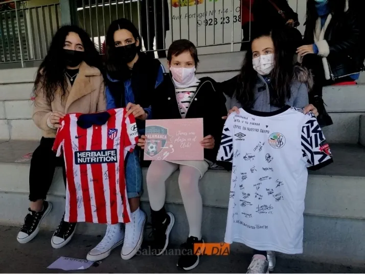Este domingo se vivió otro precioso gesto del fútbol con María, ?la princesa guerrera futbolera?. El Salamanca UDS Femenino y el Atleti le dieron dos camisetas firmadas en el encuentro que midió a ambos conjuntos en el Vicente del Bosque. De este modo, la joven luchadora volvió a recibir las muestras de cariño de una ciudad volcada con ella.