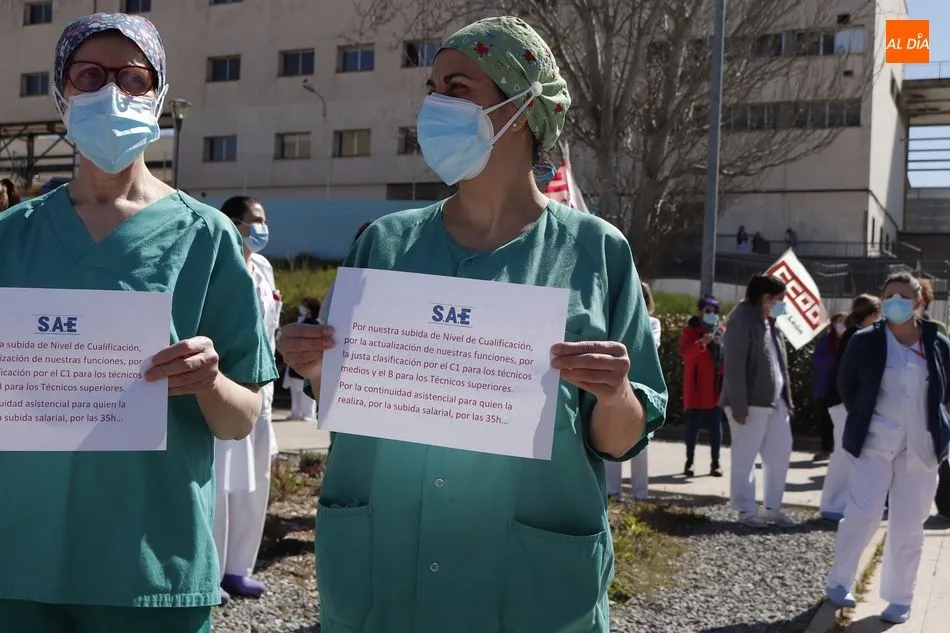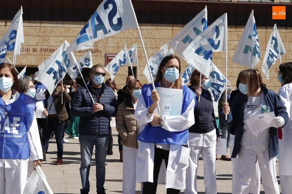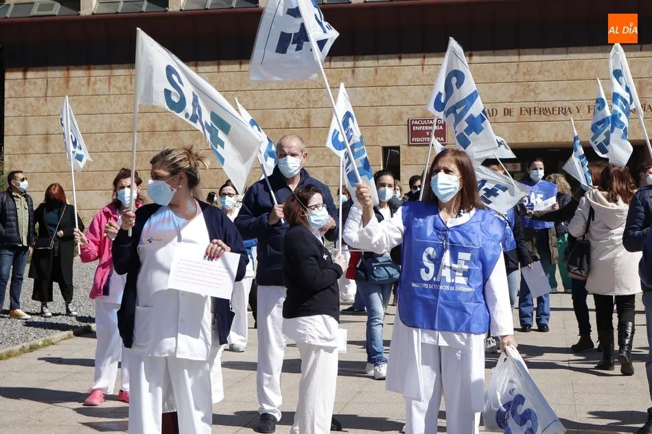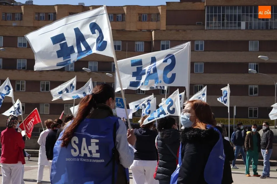 Los Técnicos en Cuidados de Enfermería están en pie de guerra. ?Si te callas, te callarán para siempre? es el lema con el que el Sindicato de Técnicos de Enfermería (SAE) convocaba a estos profesionales de Castilla y León a salir a las 12.00 horas a las puertas de sus centros de trabajo, tal y como ocurría frente al Hospital Clínico, en protesta por ?el discriminatorio acuerdo que la Consejería de Sanidad de la Junta de Castilla y León ha firmado con el sindicato de enfermeras?.
