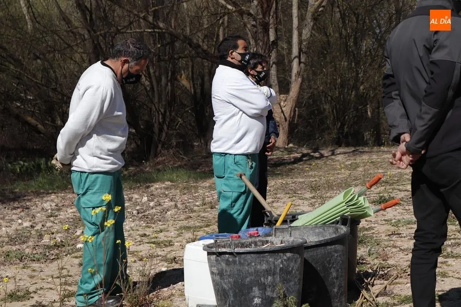 Actuación en la ribera del río Tormes, junto al nuevo vial de acceso al complejo sanitario, con los primeros ejemplares de olmos resistentes a la grafiosis