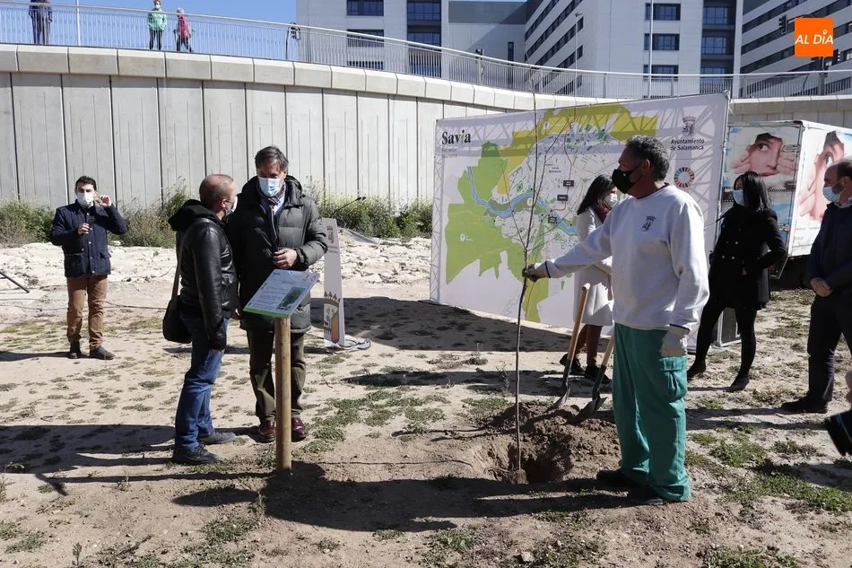 El alcalde también recordó que el ?Bosque de los sanitarios? se suma al reverdecimiento del muro del vial del hospital que el Ayuntamiento llevará a cabo con enredaderas y madreselvas, además de jardineras en la base. Al mismo tiempo, será parte de recorridos culturales y medioambientales, así como de la modernización del Parque Botánico de Huerta Otea y su transformación como centro de investigación agroambiental dentro de las actuaciones de la Estrategia EDUSI Tormes+. Proyecto que incluye la reforestación del parque y la mejora de los accesos, paseos, mobiliario urbano, alumbrado público, fuentes ornamentales y estanques.