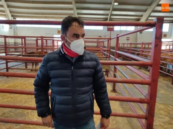 En el mercado de ganados que se celebra en Salamanca los lunes se dan cita, principalmente, ganaderos y tratantes, compradores y vendedores. José Agustín García tiene un cebadero en Alba de Tormes y es tratante. Este lunes acudió a vender terneros.