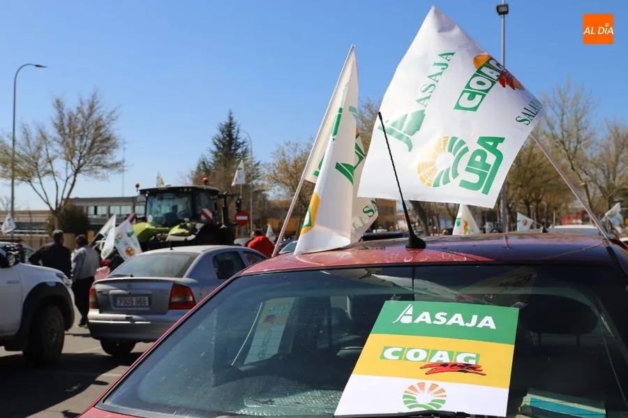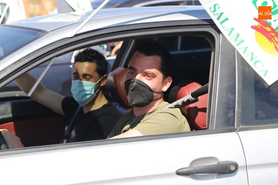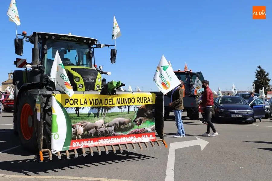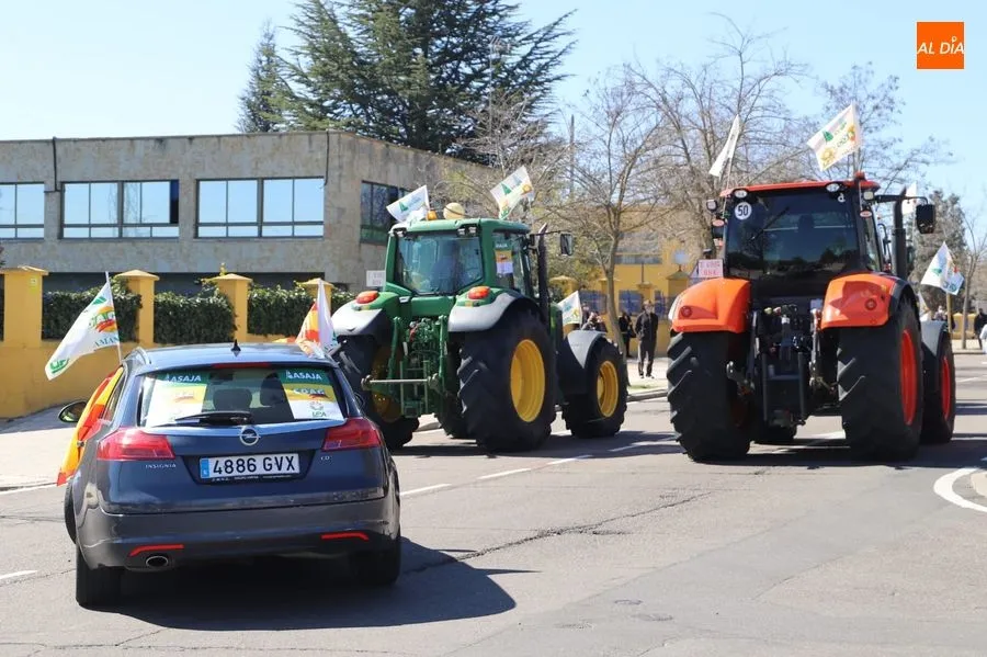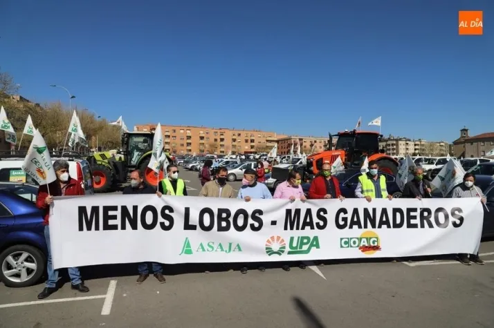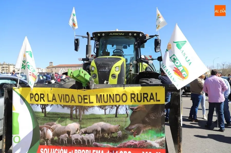 Las organizaciones profesionales agrarias ASAJA, COAG y UPA critican el abandono del Gobierno a los ganaderos que se enfrentan a los lobos cada día y así lo han manifestado con una caravana de coches y tractores que ha recorrido la ciudad charra.