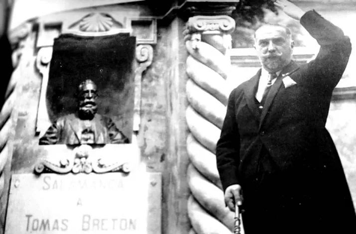 Tomás Bretón Hernández, compositor y director de orquesta nació en Salamanca el 29 de diciembre de 1850 y falleció en Madrid en 1923. Hijo de una humilde familia y huérfano de padre, a los dos años y a costa de grandes sacrificios, pudo empezar sus estudios en la escuela de Bellas Artes de San Eloy de su ciudad natal.