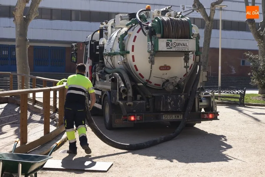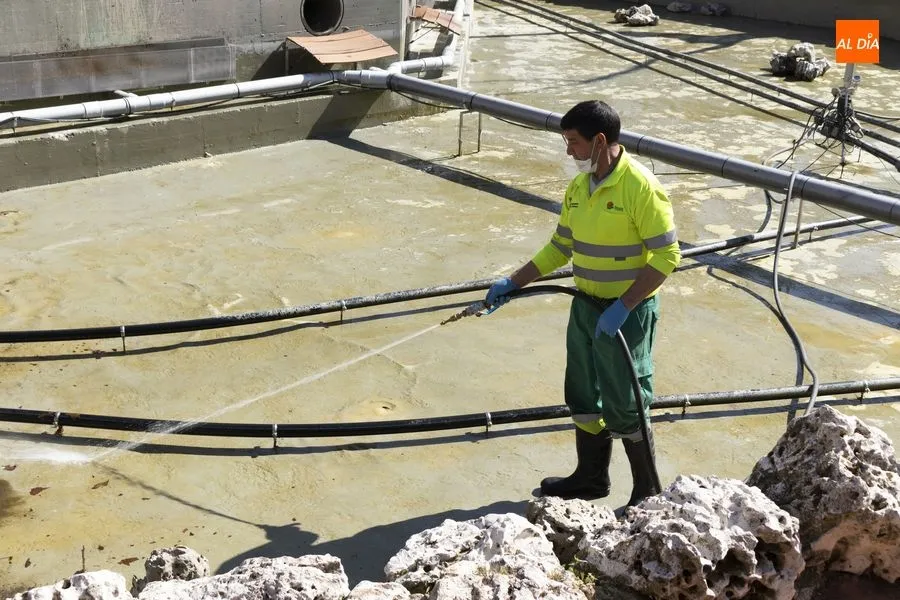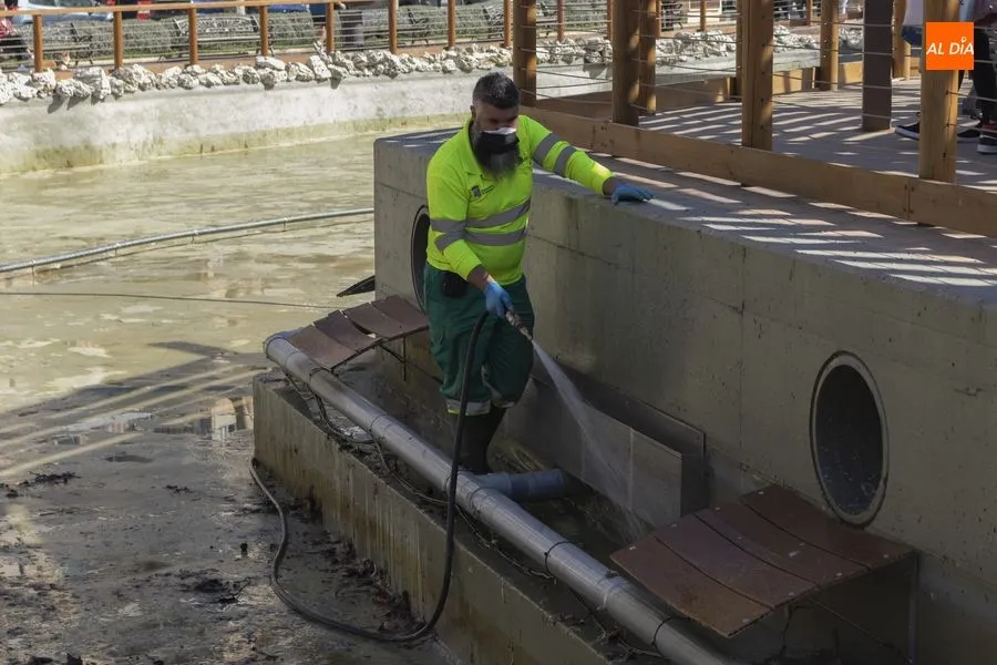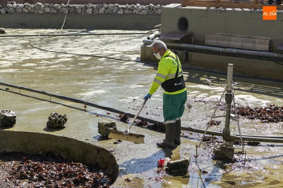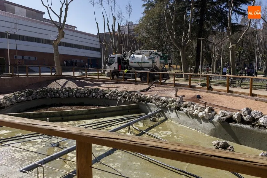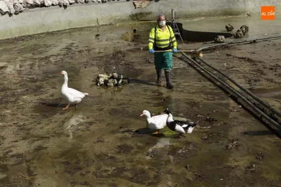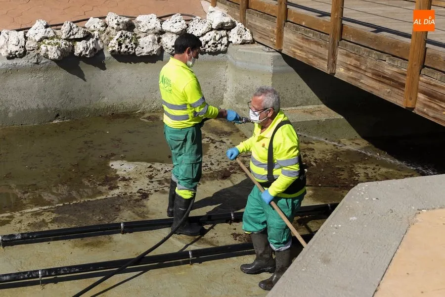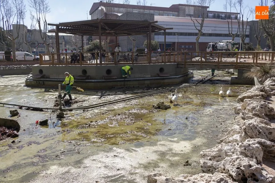 Operarios del Ayuntamiento de Salamanca han procedido este jueves al vaciado del agua del estanque del Parque de la Alamedilla con la finalidad de acometer distintos trabajos de limpieza. El vaso volverá a llenarse una vez que hayan finalizado estas labores que se repiten cada año para mantener esta instalación en perfectas condiciones y un óptimo estado de conservación.